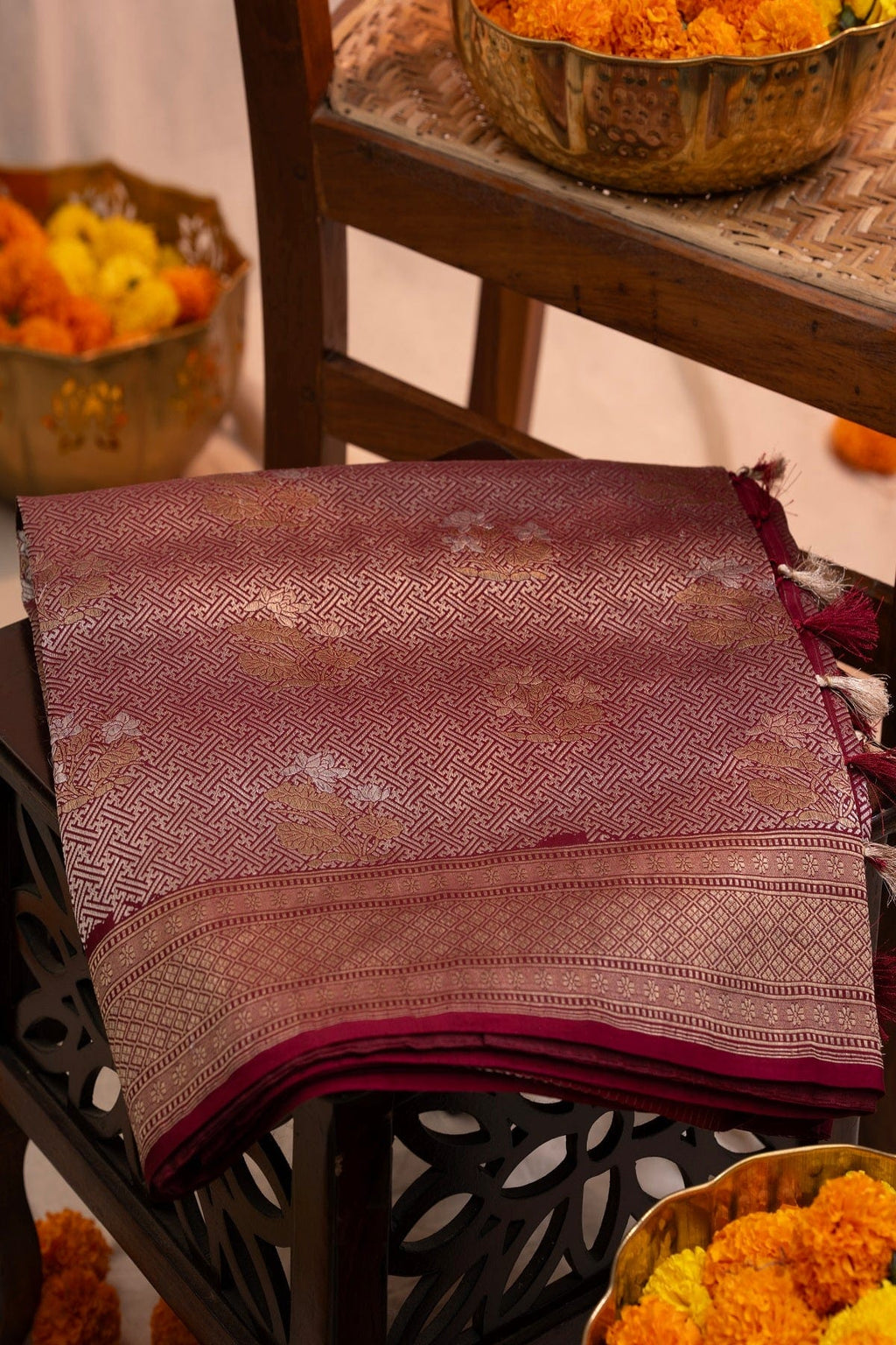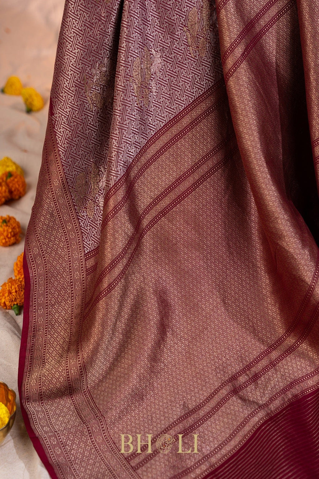 Wrap yourself in the timeless charm of this antique zari brocade Banarasi saree, crafted from soft, pure Katan silk. Its delicate drape and intricate zari work add an elegant shimmer that dances with every movement. Perfect for celebrations or simply to feel fabulously festive, this saree blends heritage craftsmanship with a touch of playful grace.