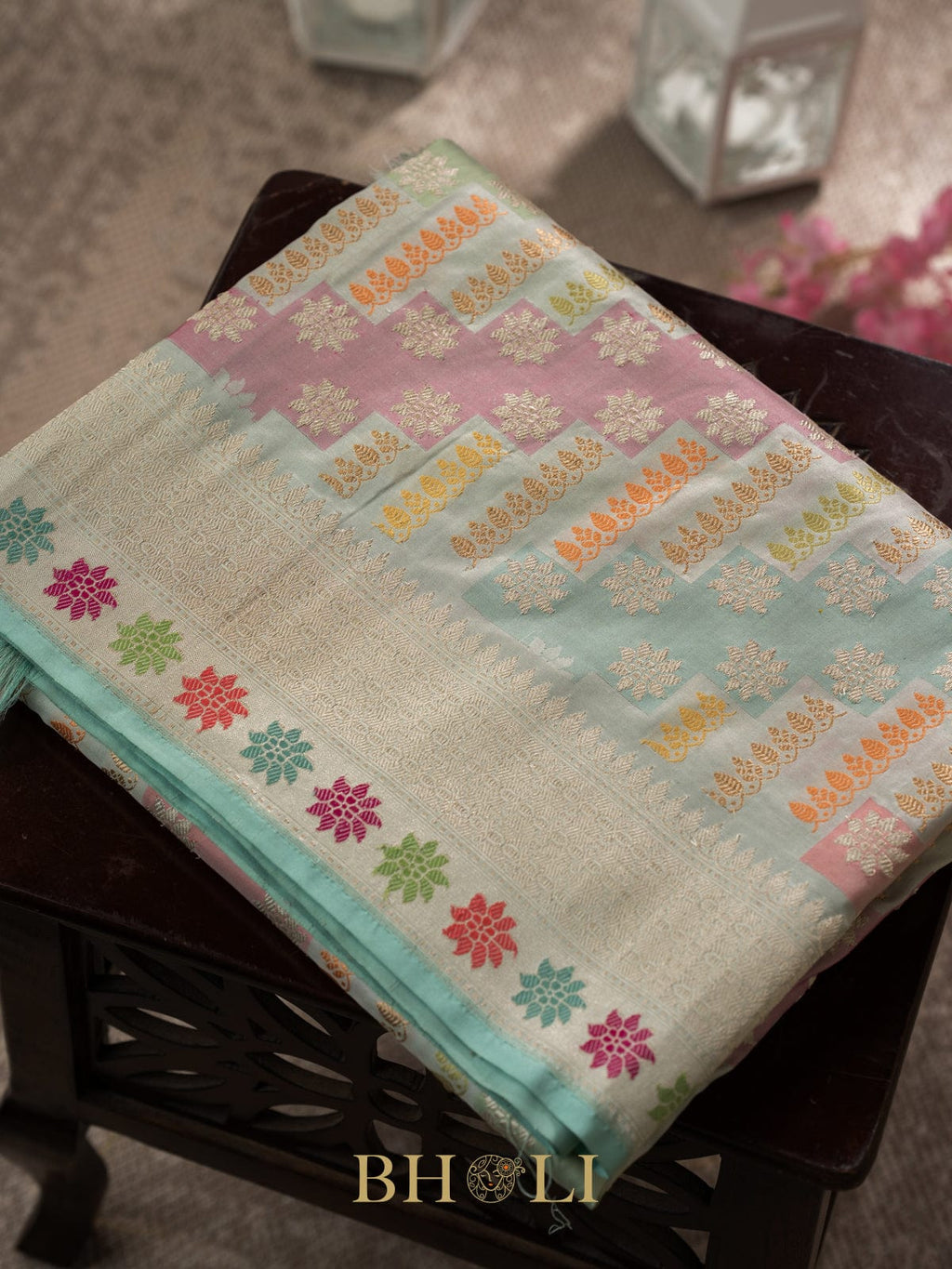Experience the elegance of the authentic Rangkat Pure Katan Silk Kaduwa Banarasi, a masterpiece woven with fine Katan silk fibers. Its rich texture and intricate craftsmanship reflect the timeless heritage of Banarasi tradition, offering a luxurious drape and lasting durability. Perfect for special occasions, this saree combines sophistication with cultural artistry, making it a distinguished addition to your collection.