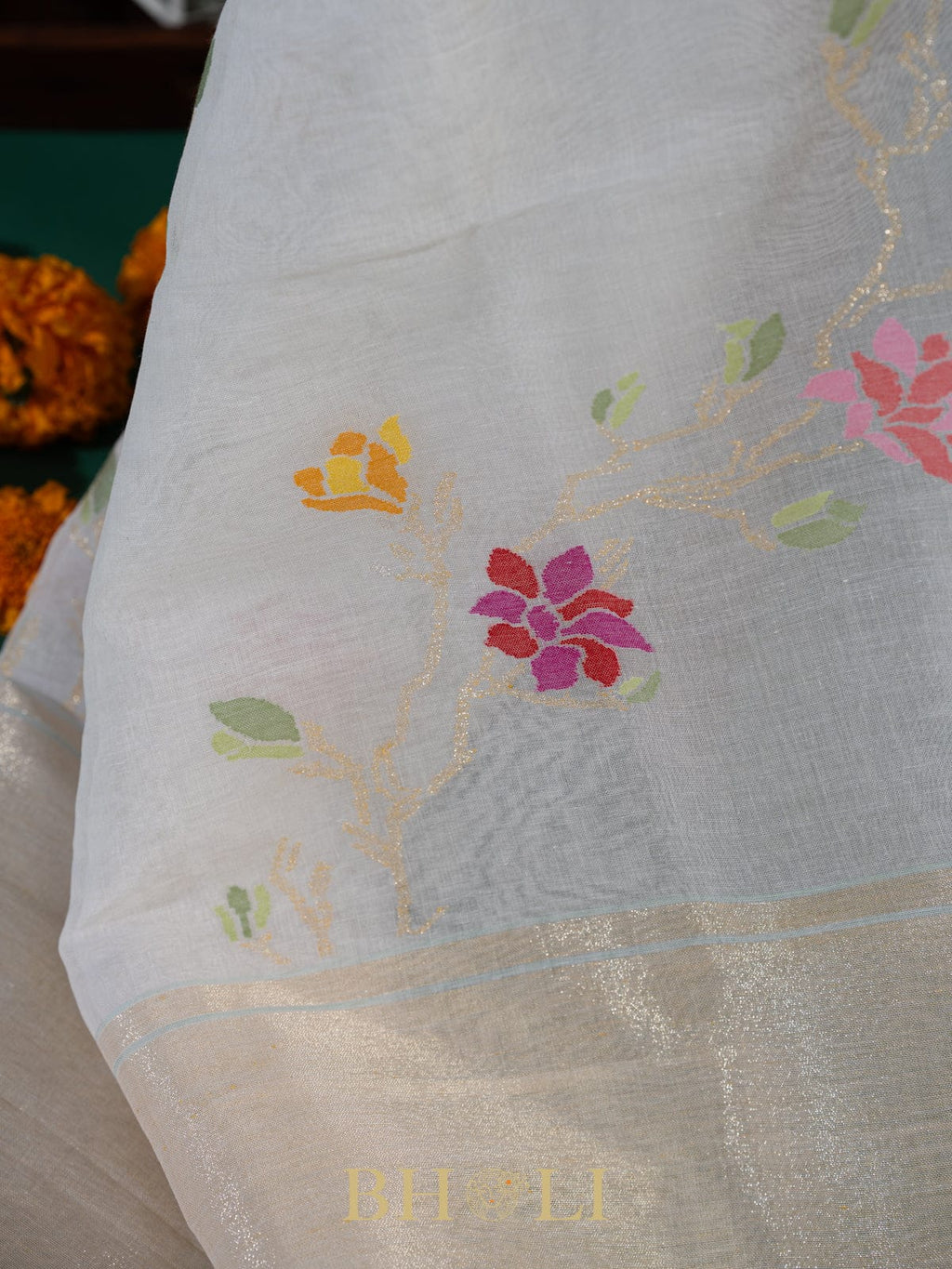 authentic real zari shwetambari pure mul cotton jamdani banarasi