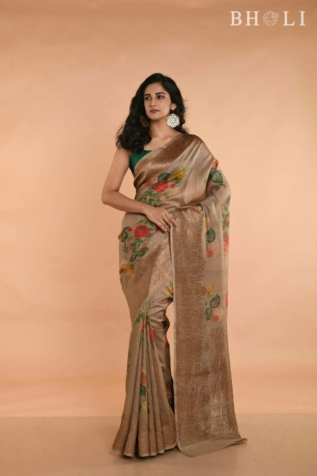 There are various type of Banarasi sarees available and one among them is the Banarasi weaving tussar silk saree which is soft, flowy and light weight