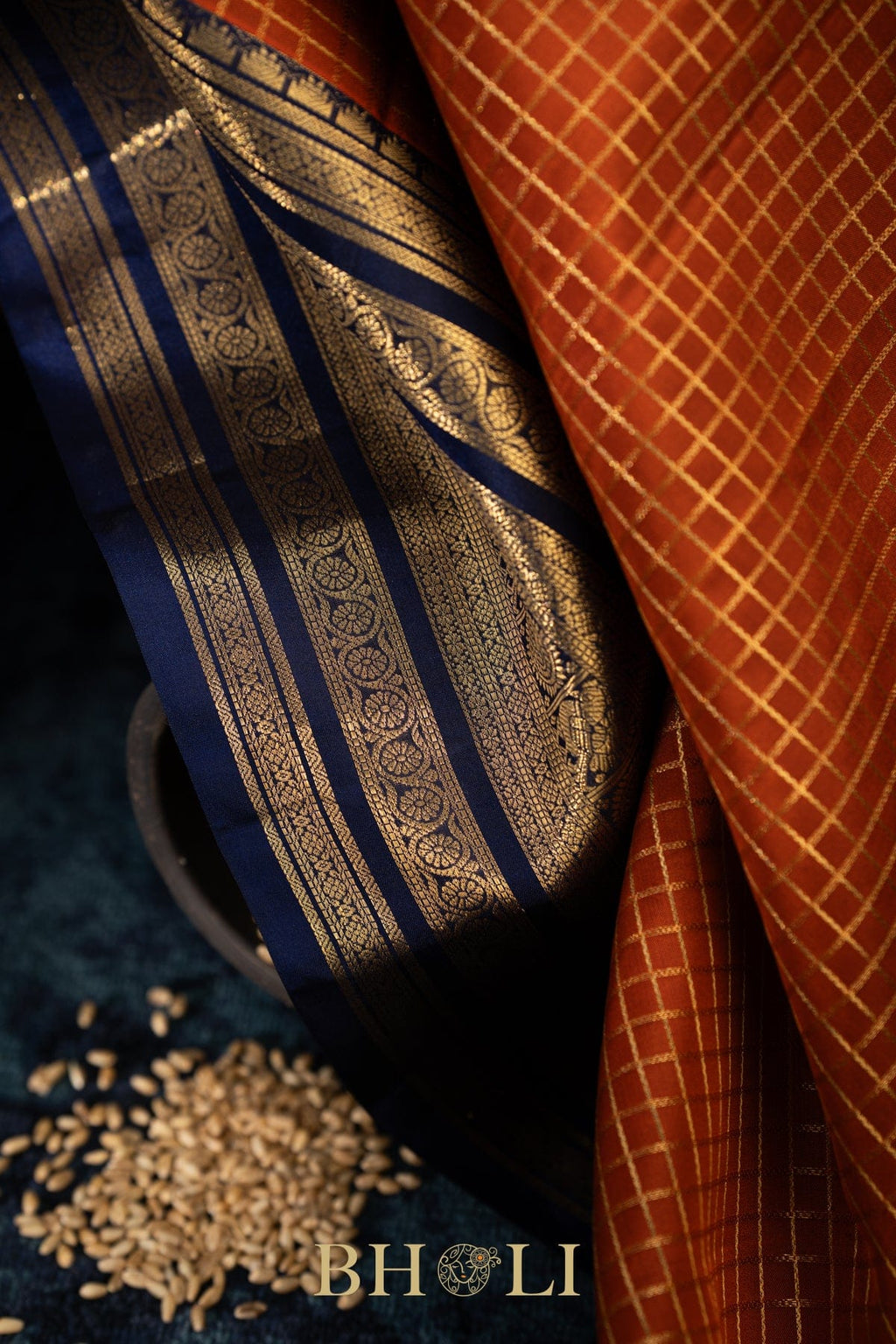 Elevate your ethnic wardrobe with this stunning checkered Kanjivaram saree, crafted from luxurious mulberry silk. The intricate korvai weaving technique showcases pure zari detailing that catches light beautifully, creating an elegant shimmer with every movement. Perfect for weddings, festivals, and special occasions, this traditional saree combines timeless craftsmanship with sophisticated design. The checkered pattern adds a contemporary touch to classic Kanjivaram aesthetics, making it versatile enough to style for both formal events and celebrations. Drape it with confidence and embrace the heritage of authentic South Indian weaving.