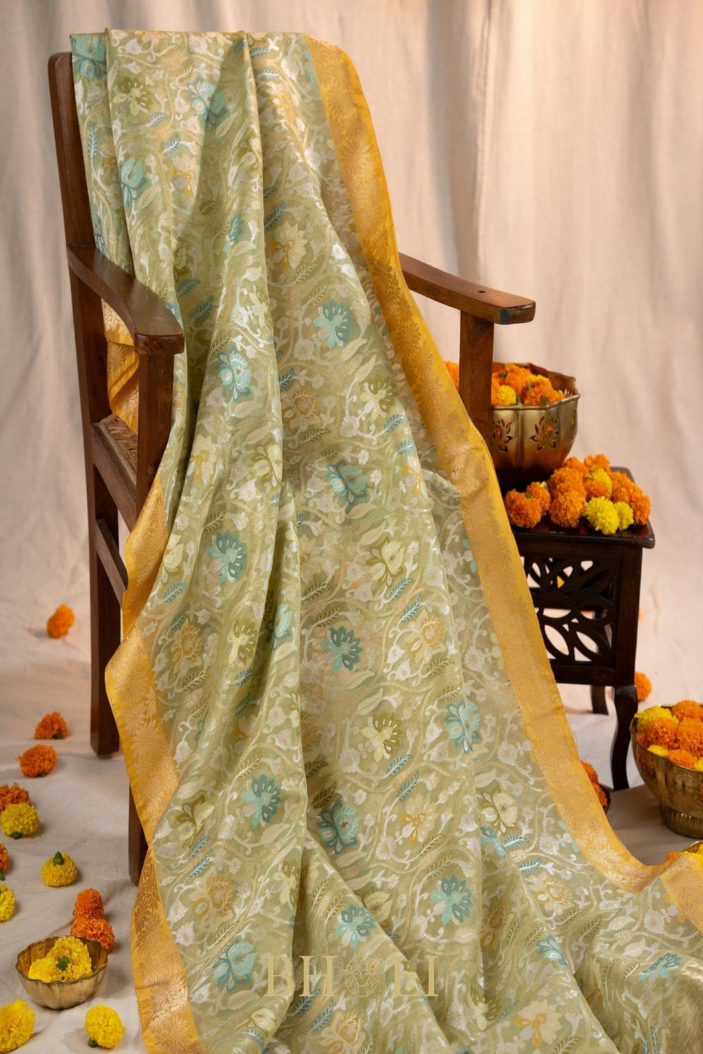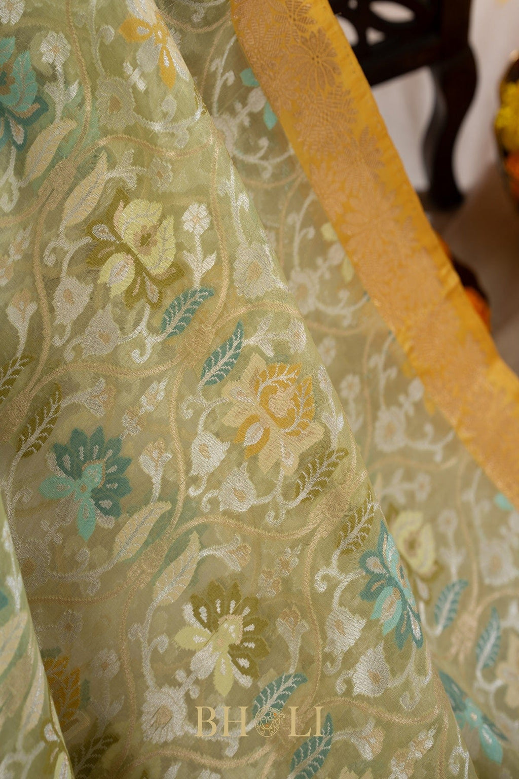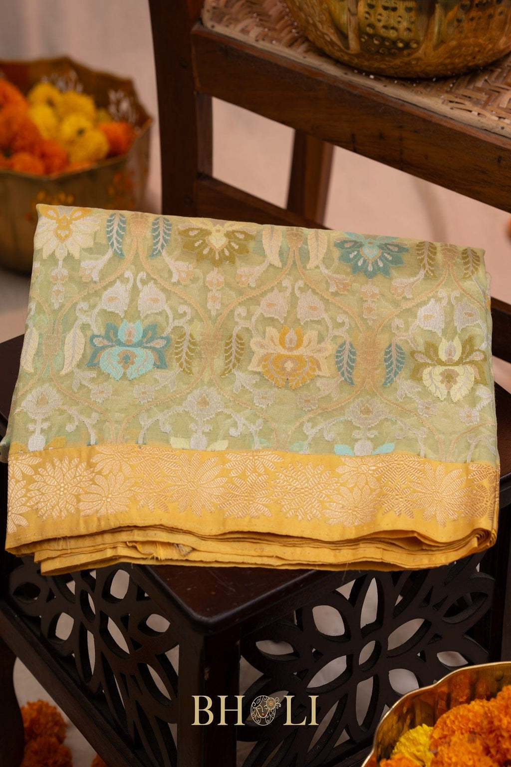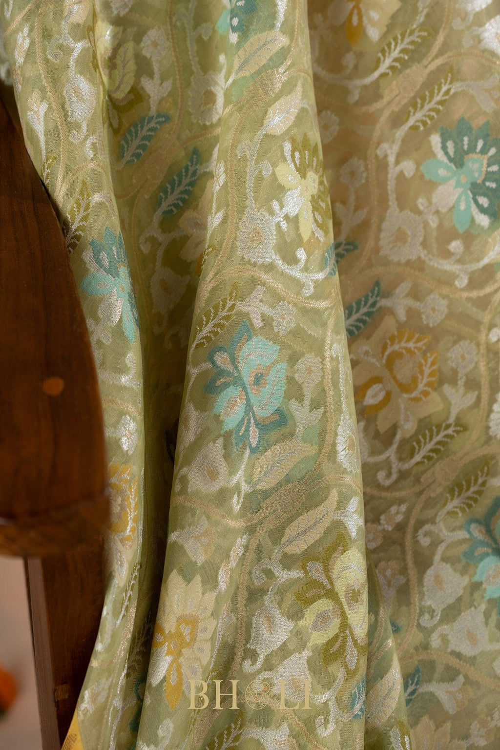 Wrap yourself in the timeless charm of our designer pure Kora silk Jaal Banarasi saree. Crafted from luxurious Kora silk, its intricate jaal patterns bring an elegant flair that’s perfect for standing out at any celebration. Light, rich, and beautifully detailed, this saree combines tradition with a touch of playful sophistication, making every occasion a little more special.