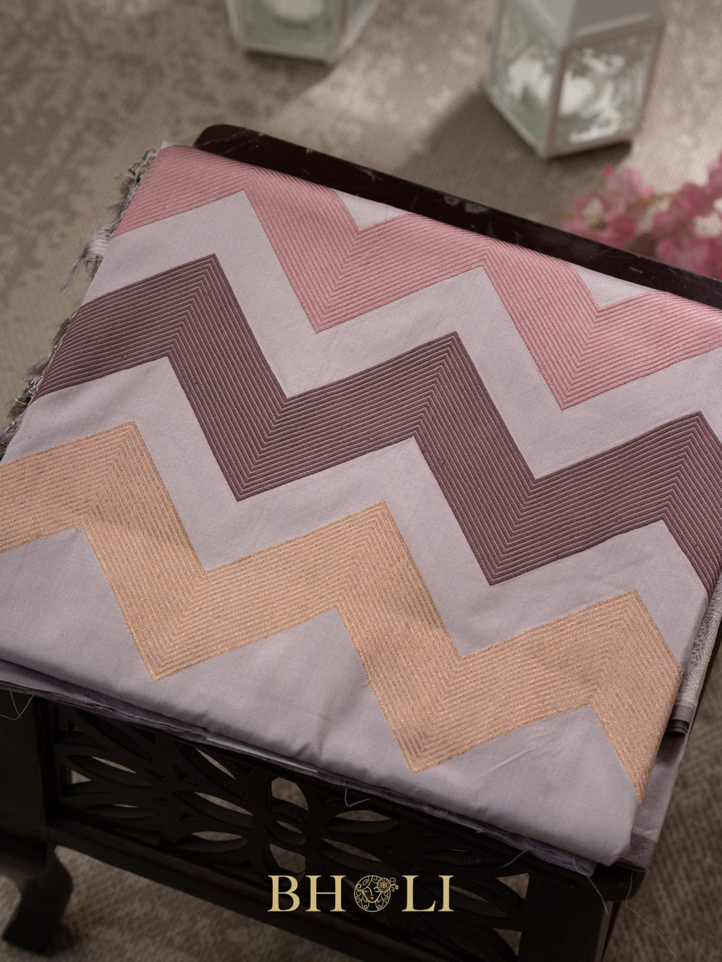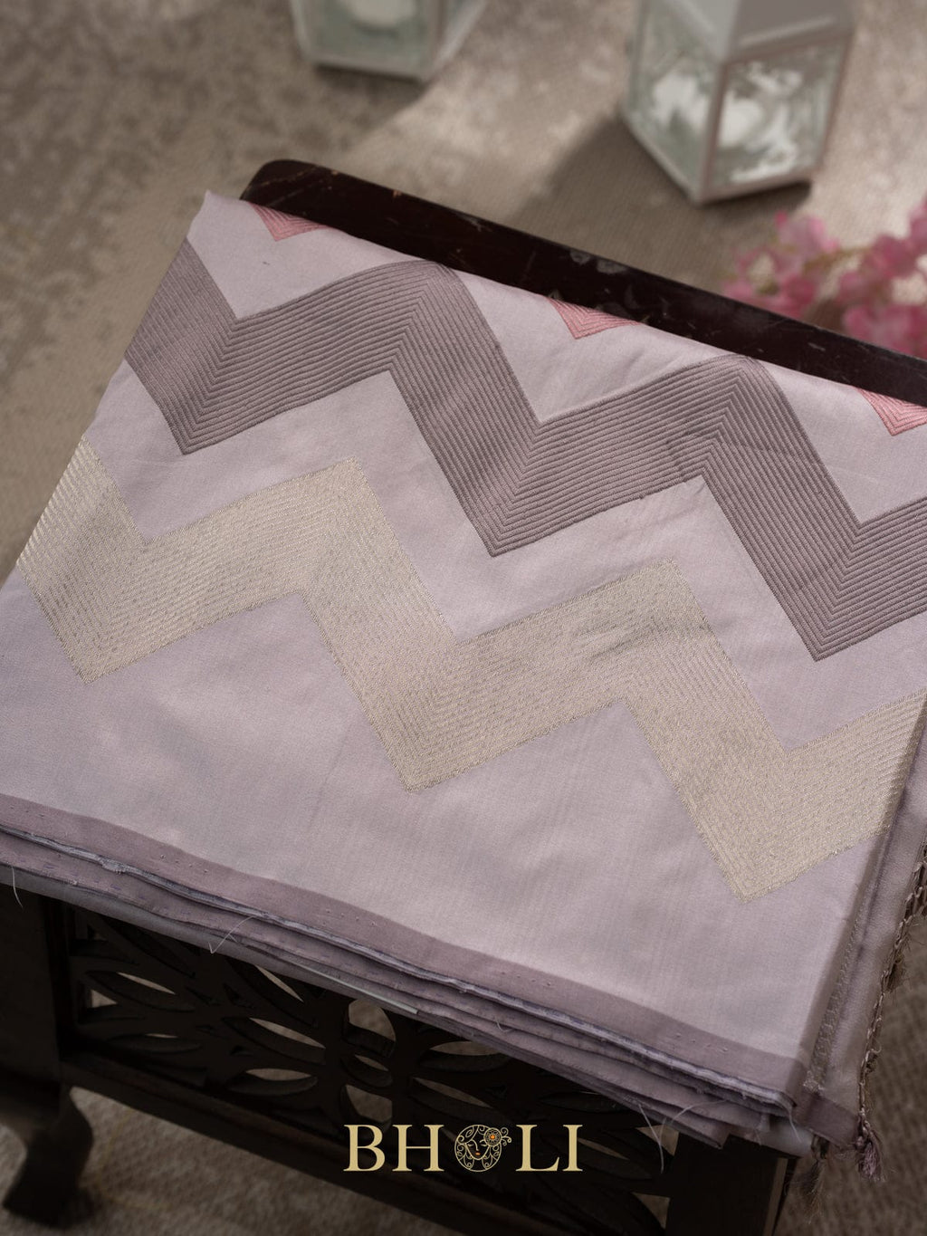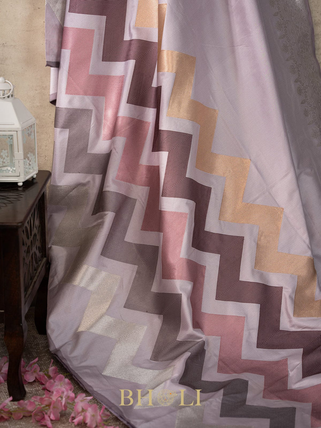 designer zig-zag handwoven pattern pure katan silk banarasi