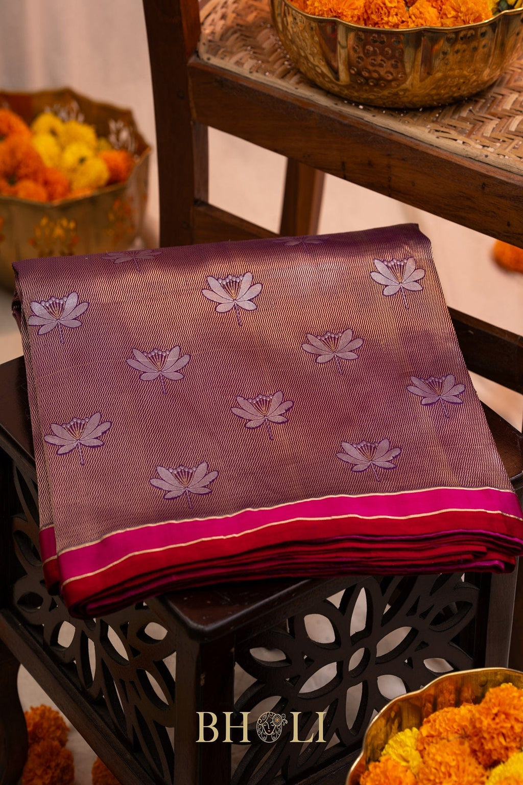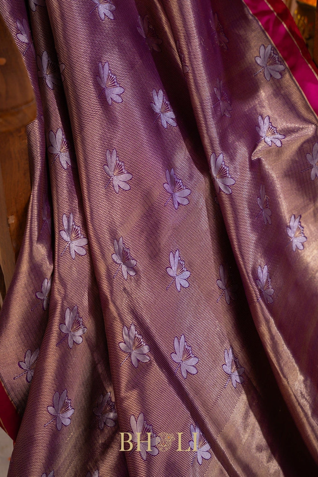 Celebrate tradition with a twist in this handwoven brocade Katan silk Banarasi saree, shimmering in a delightful mauve hue. Its rich texture and intricate weaving add a playful charm, making every drape a statement of elegance and joy. Perfect for those who love a splash of color with timeless craftsmanship.