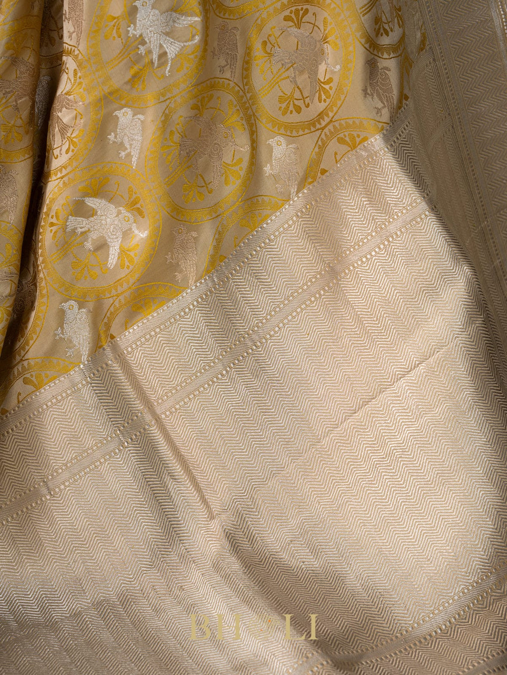 Experience the elegance of traditional craftsmanship with this handwoven full Kaduwa Mashru Gaji Banarasi. Meticulously crafted, its intricate texture and rich fabric reflect timeless artistry. Perfect for those seeking refined style coupled with cultural heritage, this Banarasi weave offers both comfort and sophistication for special occasions.