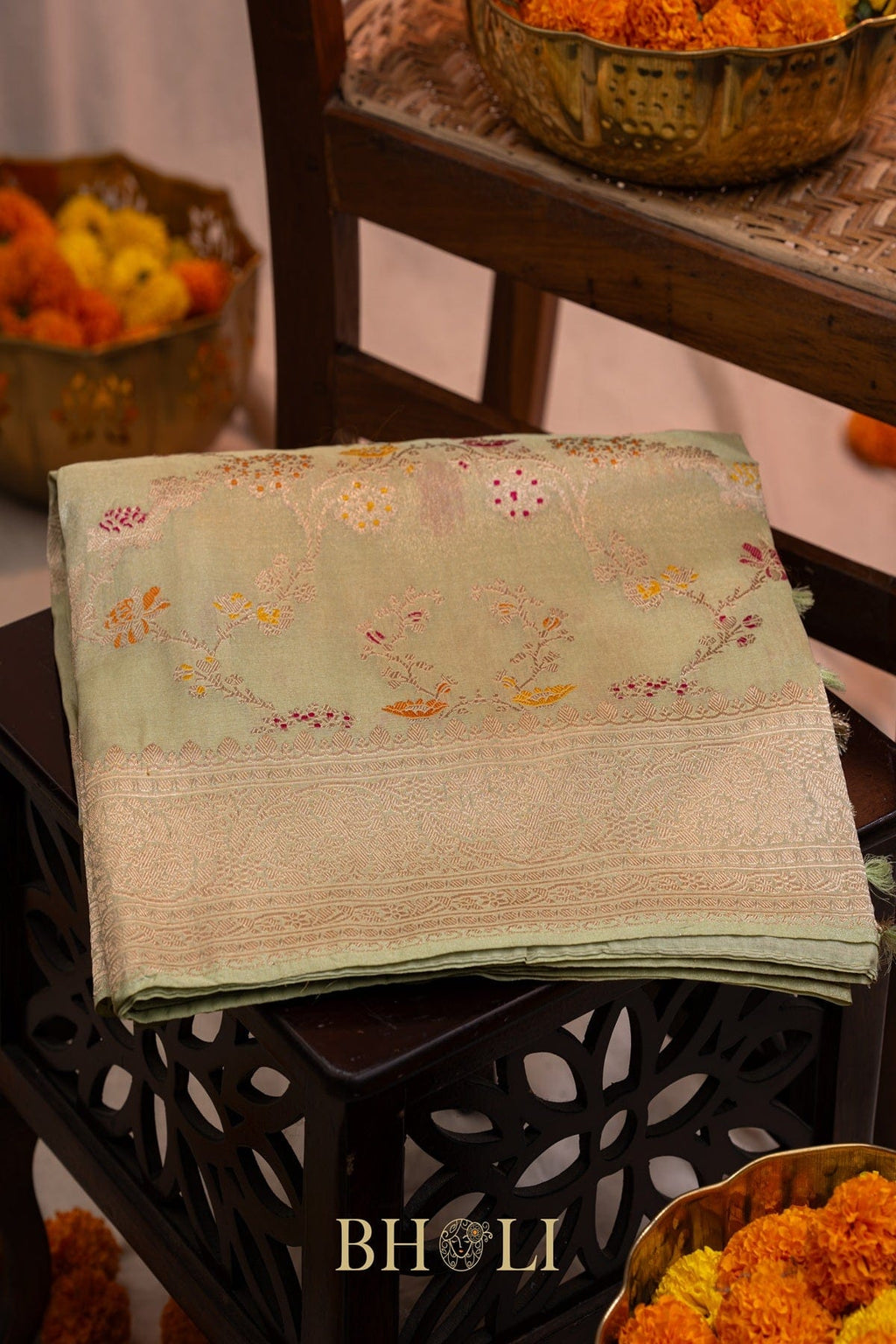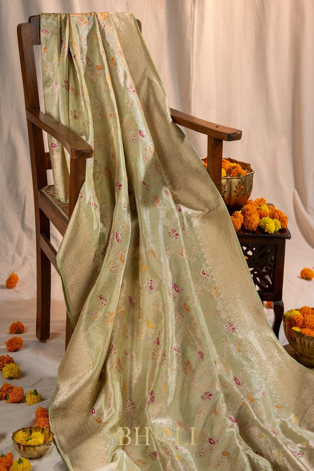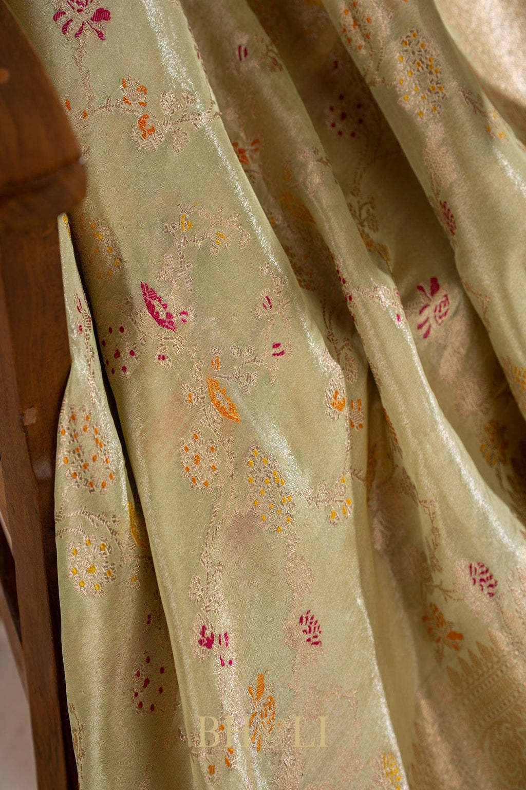 handwoven kaduwa meenakari jungla pure tissue silk banarasi