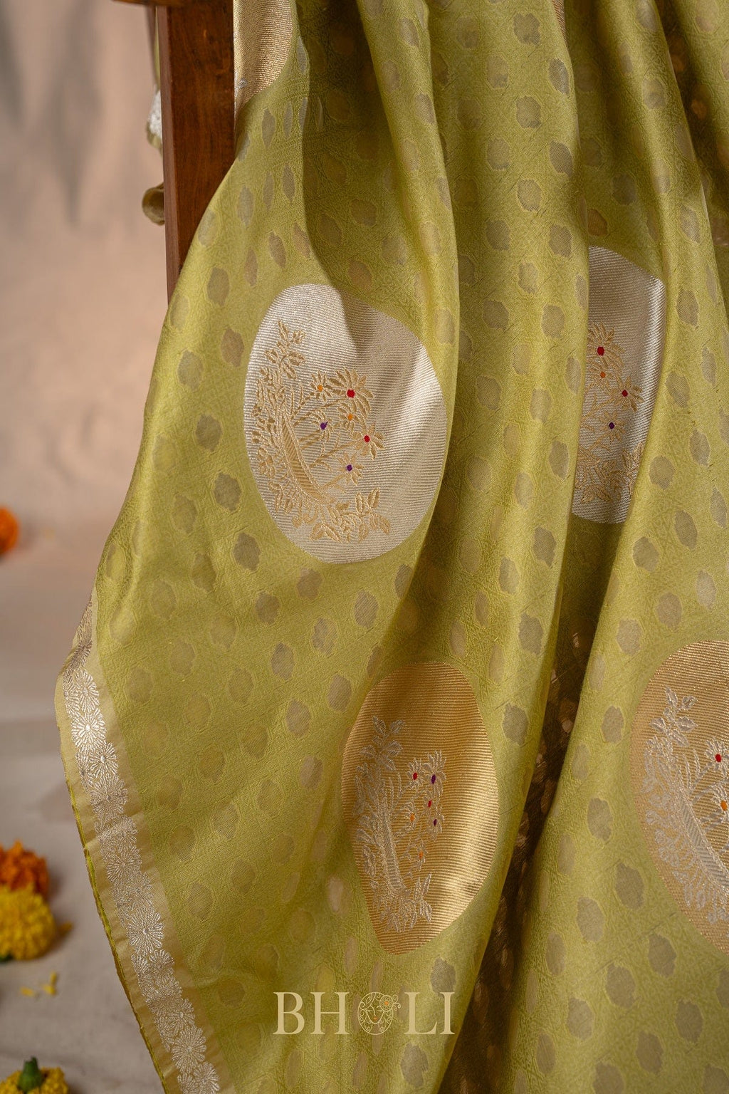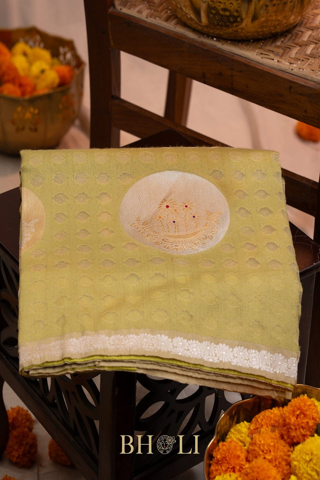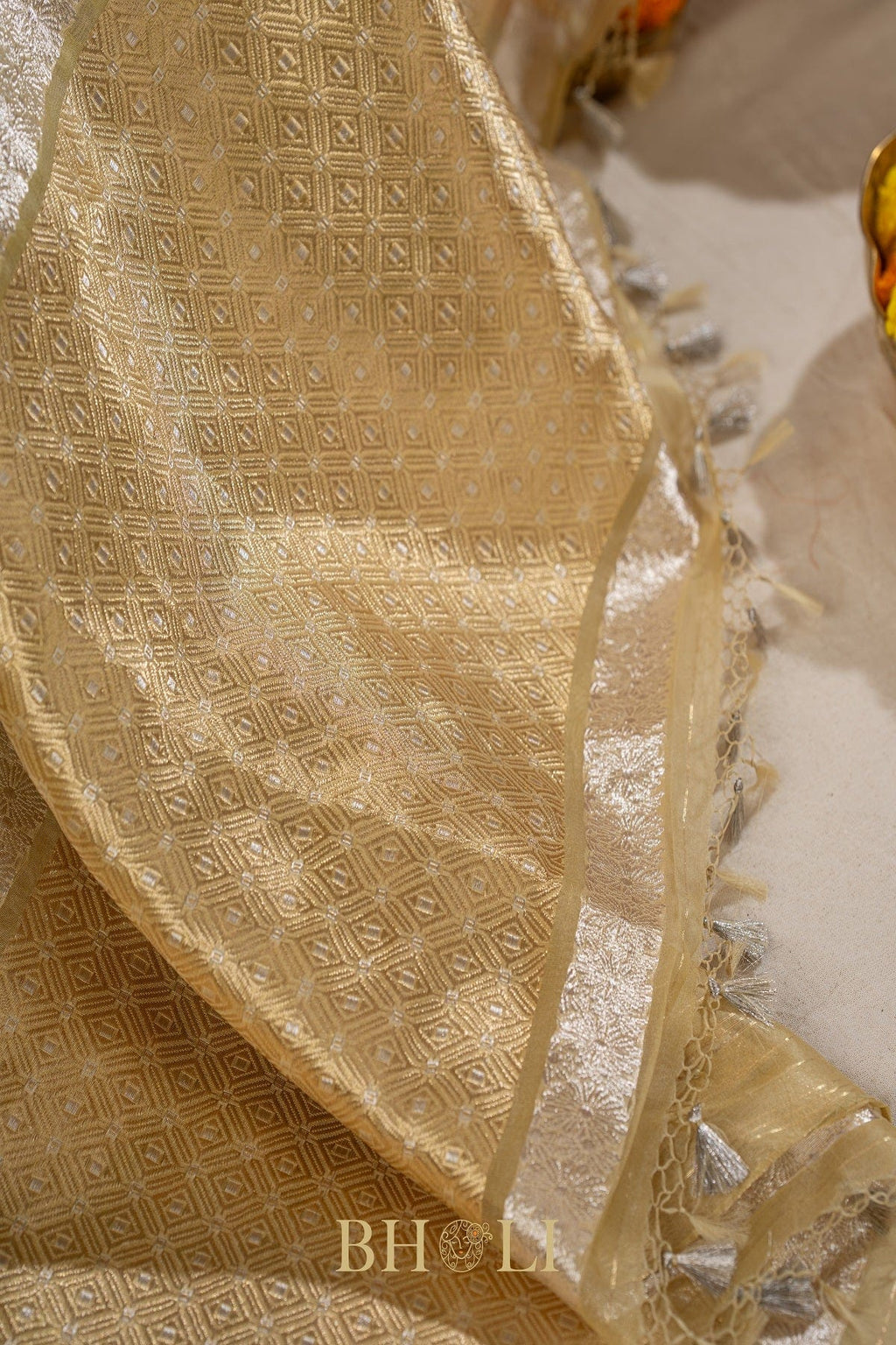 Step into a world of elegance with this handwoven Kora Banarasi saree, adorned with playful designer buta motifs that dance across the fabric. Its intricate craftsmanship promises a luxurious drape perfect for making any occasion unforgettable. Bring a splash of tradition with a twist of fun to your wardrobe today!