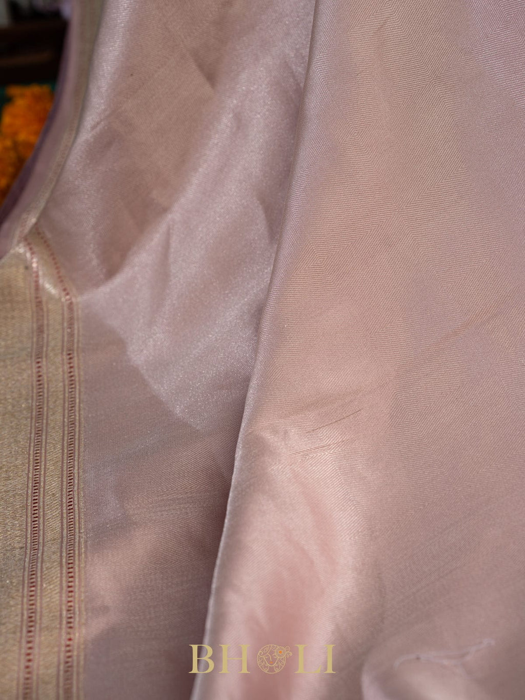 handwoven light pink silver brocade katan silk banarasi