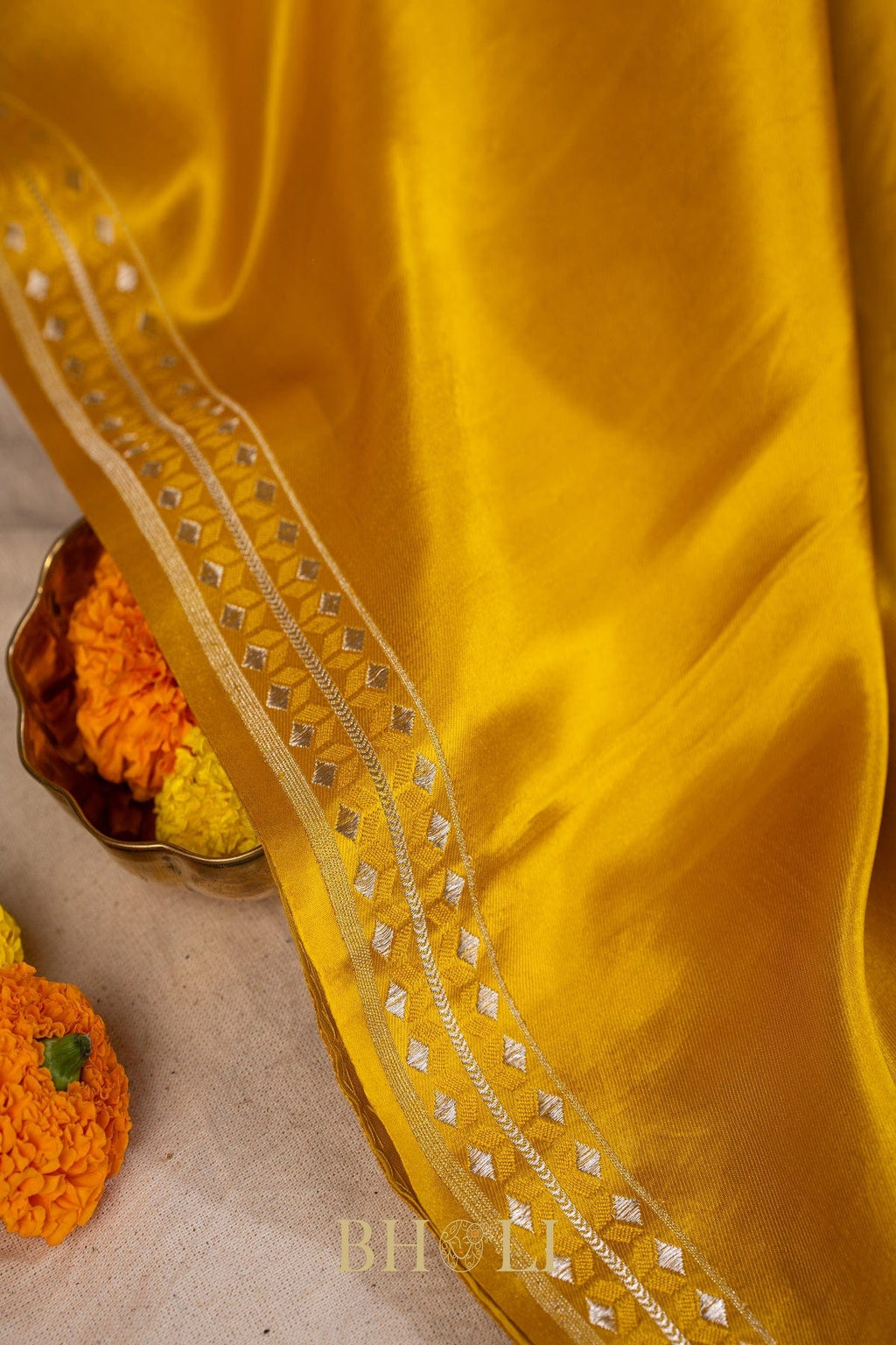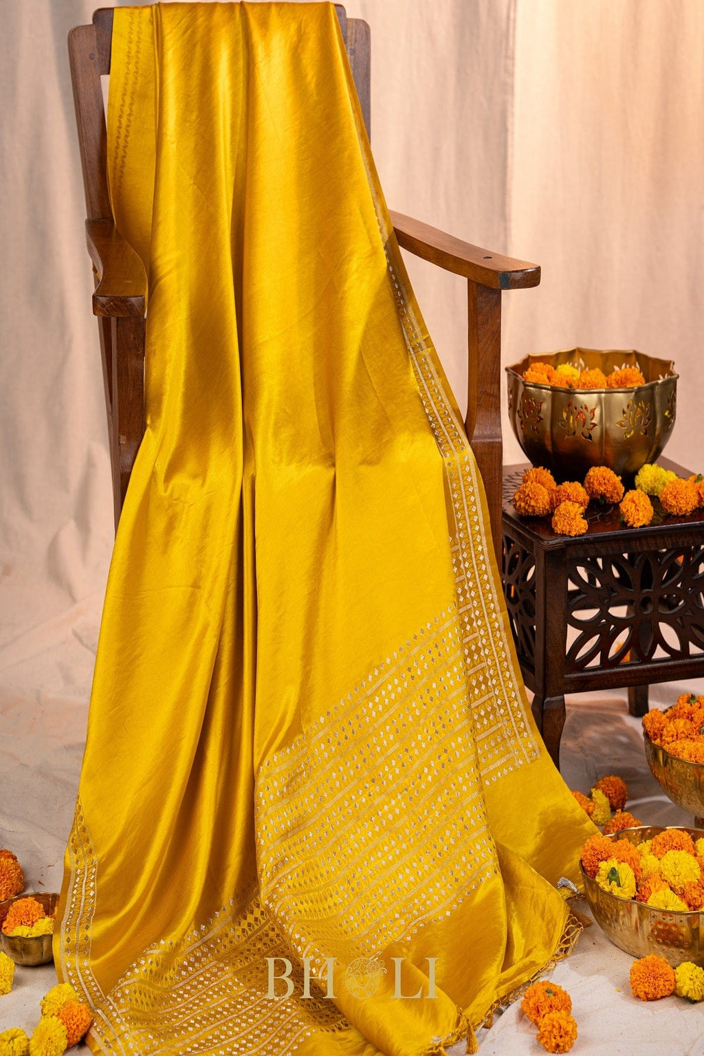 Wrap yourself in centuries of tradition with this playful handwoven Mashru Gaji Silk Banarasi. Its rich weave combines the smooth lustre of silk with the unique Mashru technique, offering a fun twist on classic elegance. Perfect for adding a splash of heritage charm with every graceful swirl.