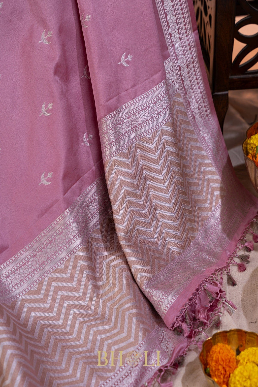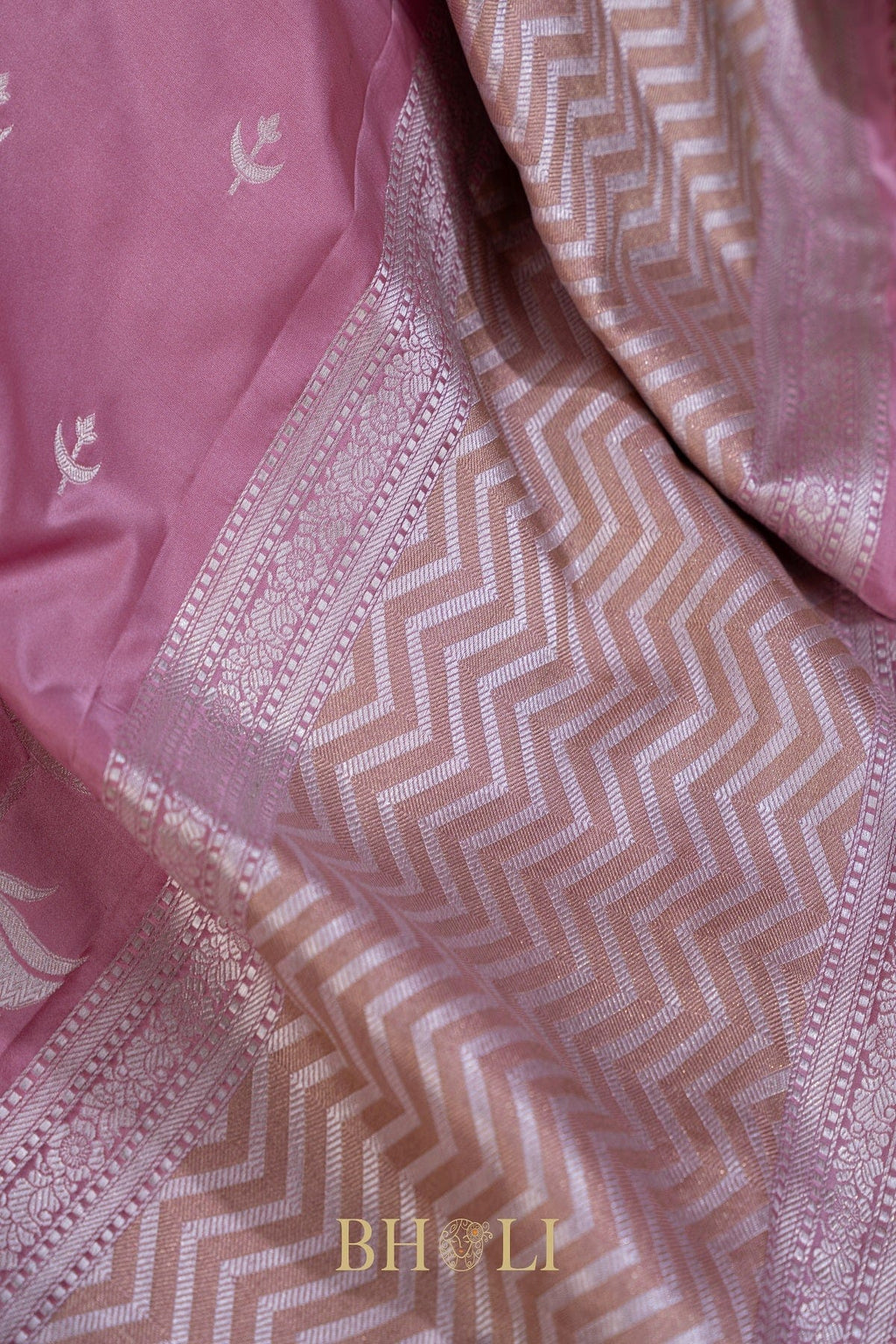 Wrap yourself in the playful charm of this handwoven Mashru silk Banarasi saree in a delightful candy pink. Luxuriously soft with intricate traditional weaving, it brings a fresh, sweet pop of color to any occasion. Perfect for dancing, celebrating, or simply flaunting your vibrant style with a touch of timeless elegance.