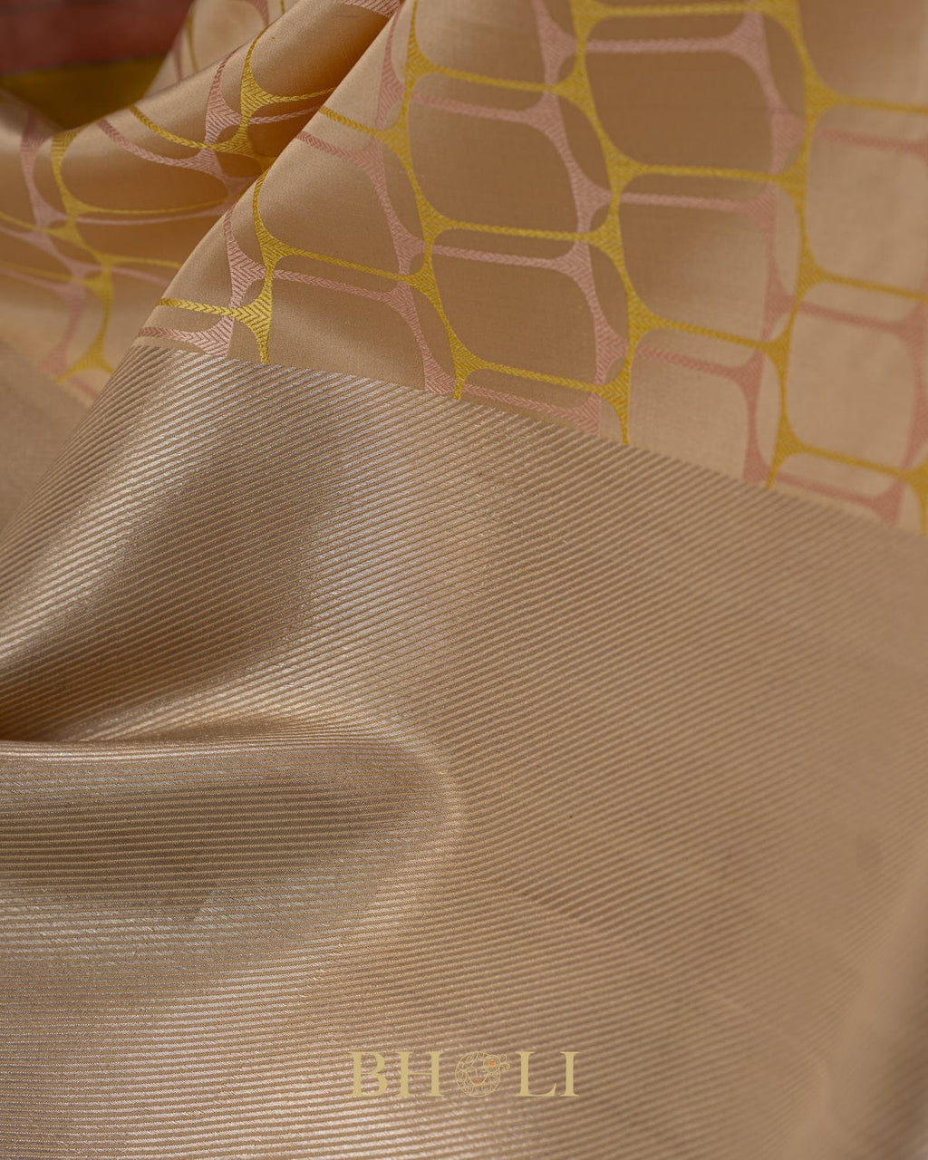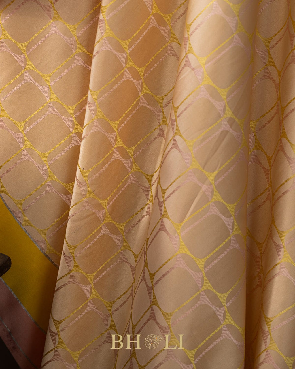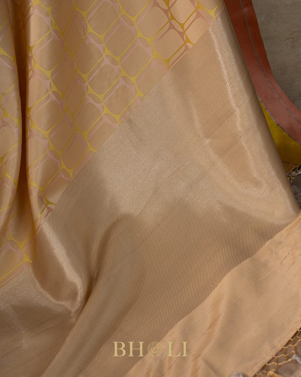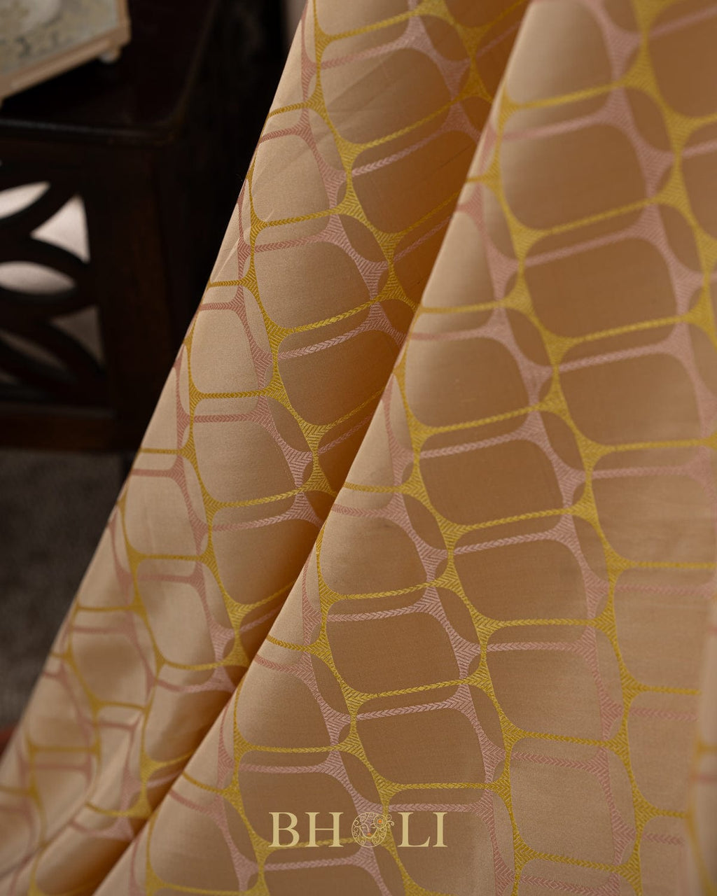 Experience timeless elegance with this handwoven Mashru silk saree, featuring a distinctive honeycomb pattern inspired by Banarasi craftsmanship. The delicate weave combines luxurious silk with a comfortable, breathable texture, making it perfect for both festive occasions and everyday grace. Its rich pattern enhances your style effortlessly, reflecting heritage while keeping you comfortable and confident. Elevate your wardrobe with this exquisite piece that promises tradition and sophistication in every drape.