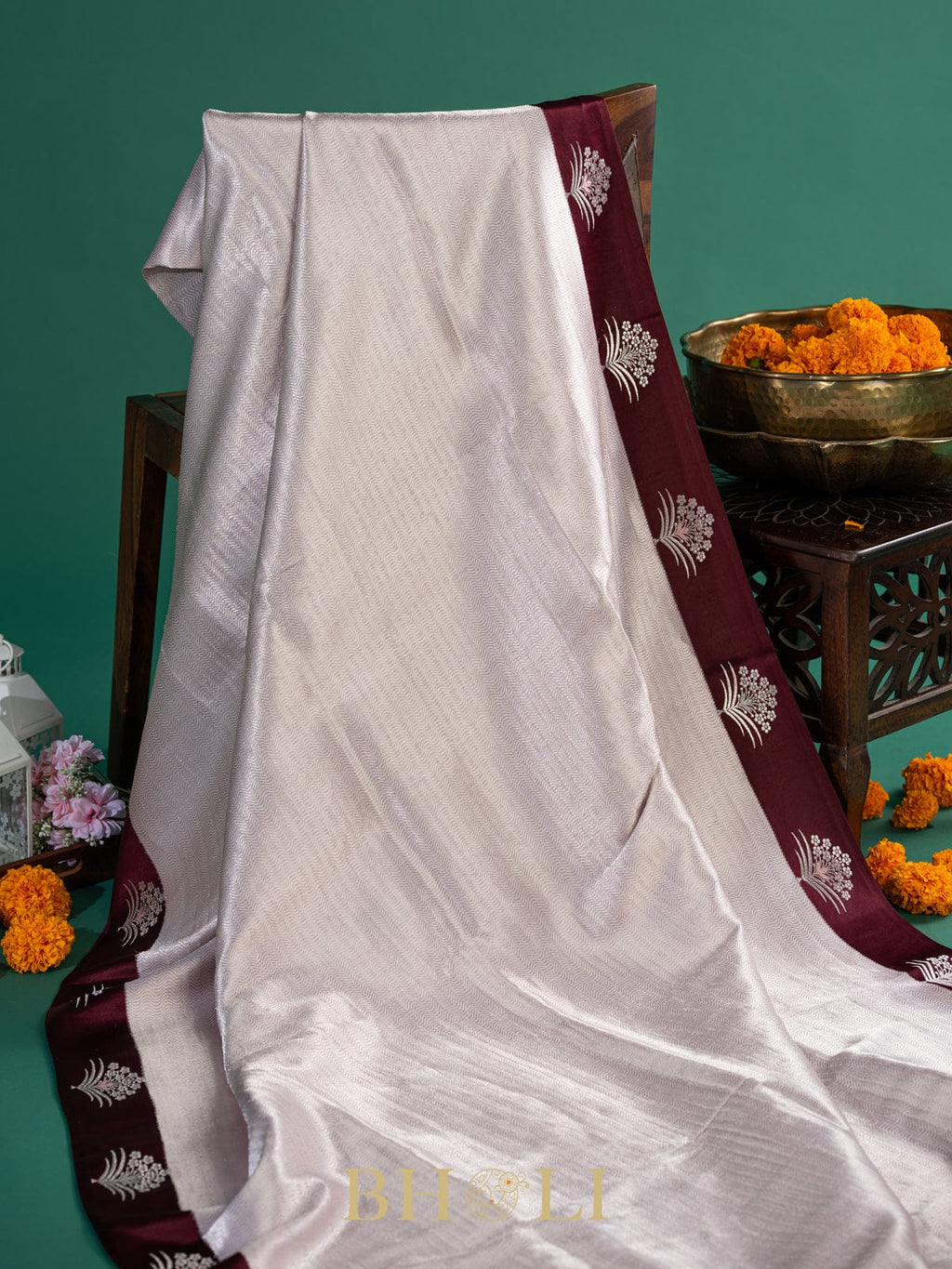 Elevate your wardrobe with this stunning handwoven Banarasi saree, where timeless tradition meets contemporary flair. Featuring an intricate kaduwa buta pattern adorned with a rich wine-colored brocade border, this classic piece brings sophistication to every occasion. Meticulously crafted by skilled artisans, the luxurious fabric drapes beautifully while the detailed brocade work adds that perfect touch of glamour. Perfect for celebrations, weddings, or whenever you want to turn heads with authentic Indian elegance.