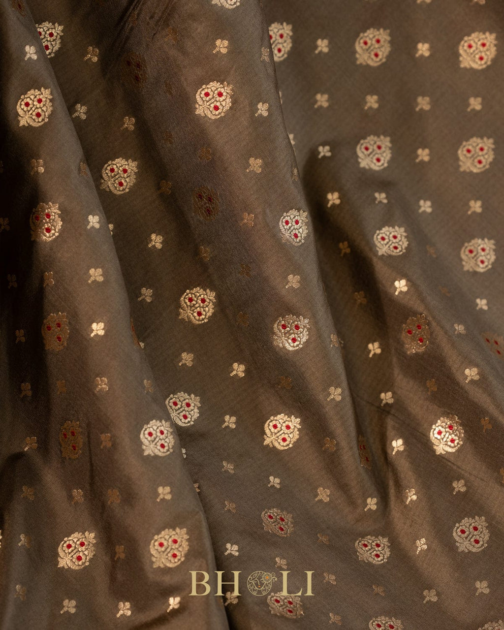 Wrap yourself in the luxurious charm of this handwoven moss green pure Katan silk Banarasi saree. Its rich texture and intricate craftsmanship make every drape a celebration of tradition and elegance. Perfect for turning heads at any festive occasion or special event, this saree blends timeless beauty with a playful splash of vibrant color. Feel the silk’s softness and the artistry that whispers stories of heritage with every thread.