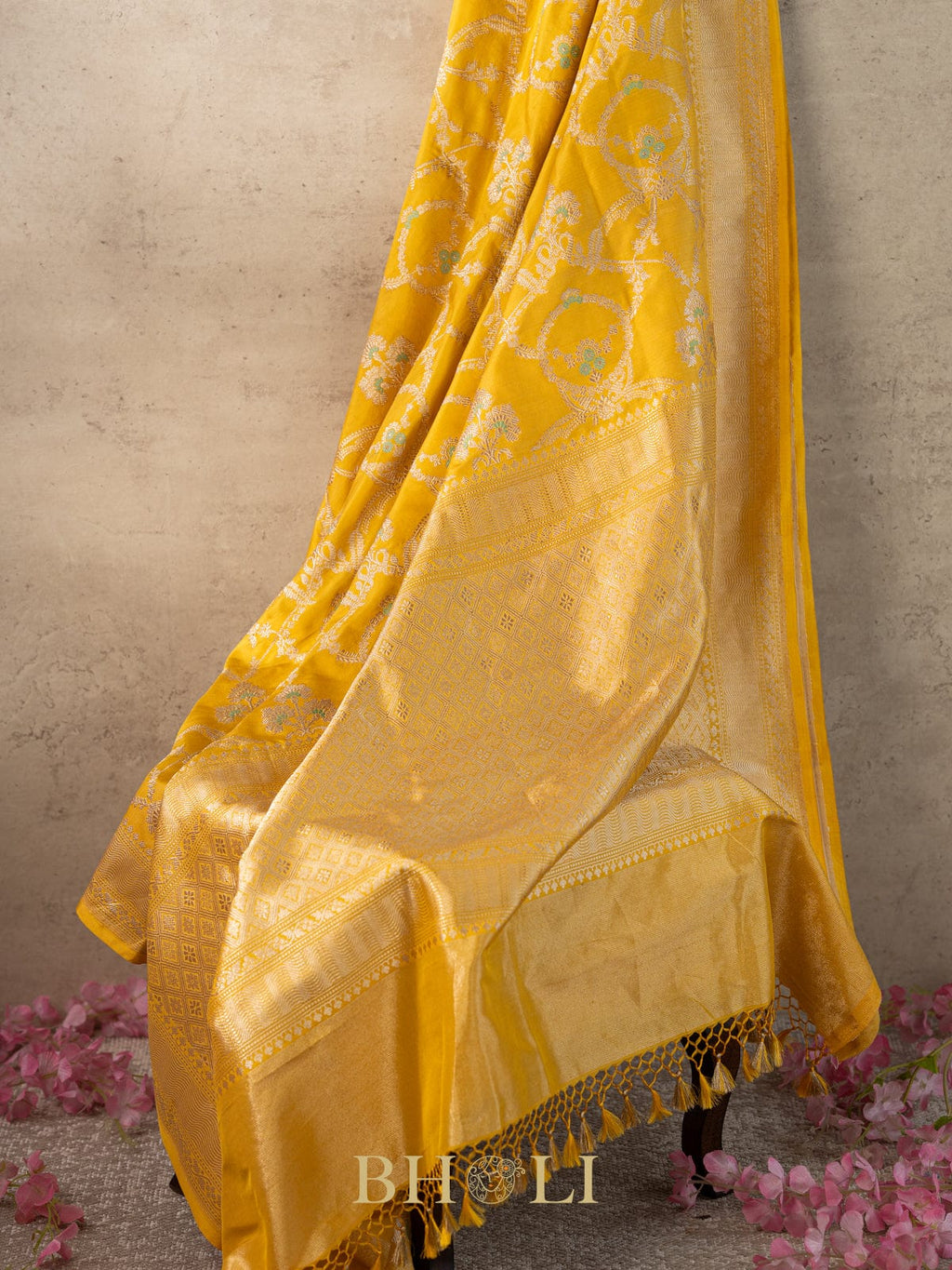 handwoven Pure katan silk meenakari kaduwa jungla banarasi