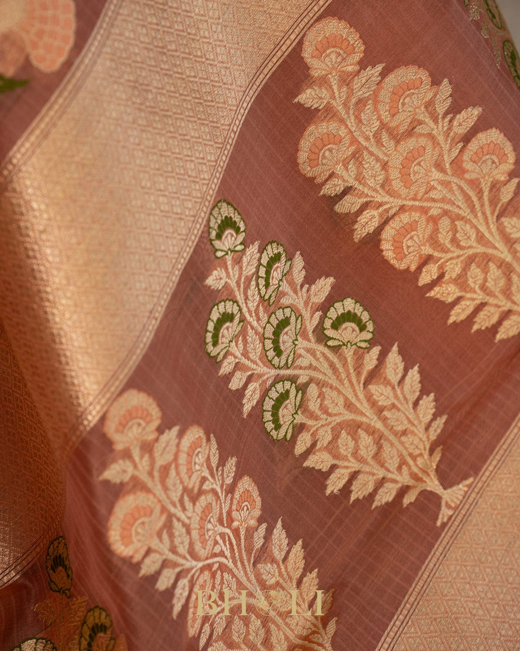handwoven pure kora silk kaduwa banarasi in mauve color