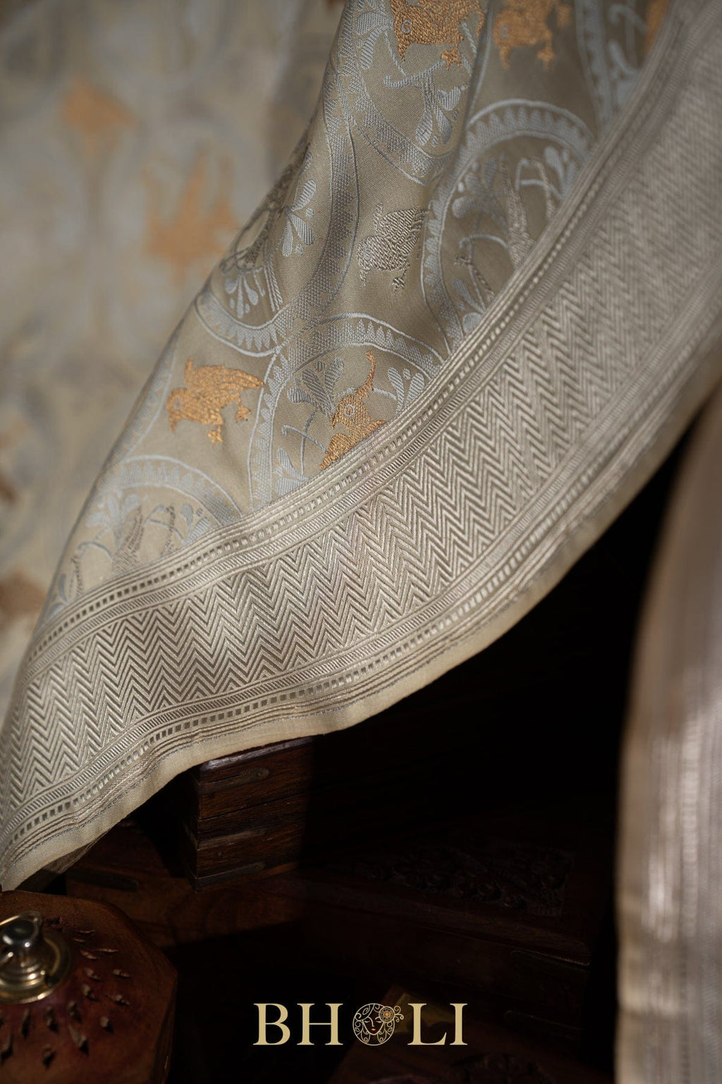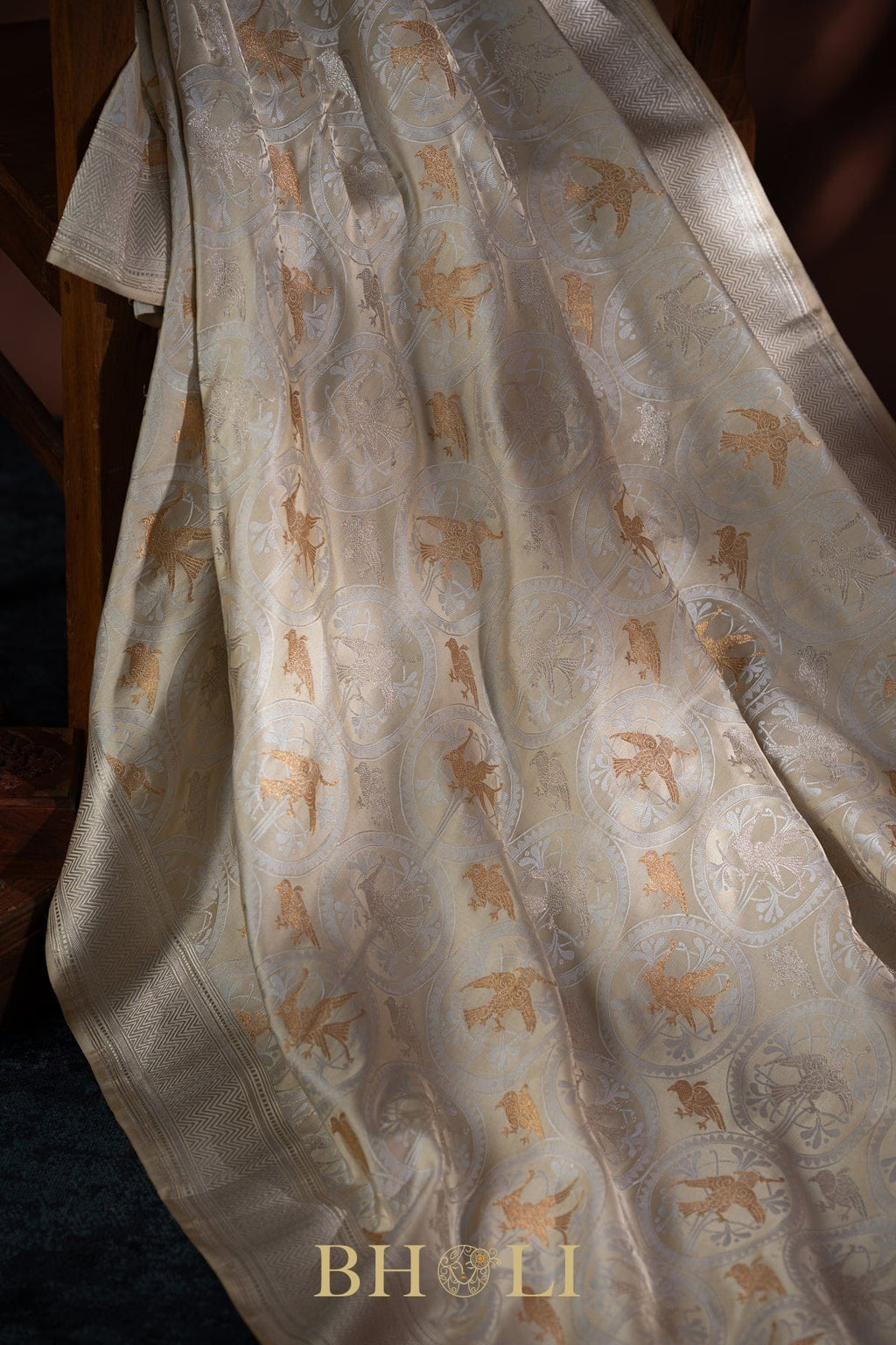 handwoven pure mashru gaji silk kaduwa jungla taupe banarasi