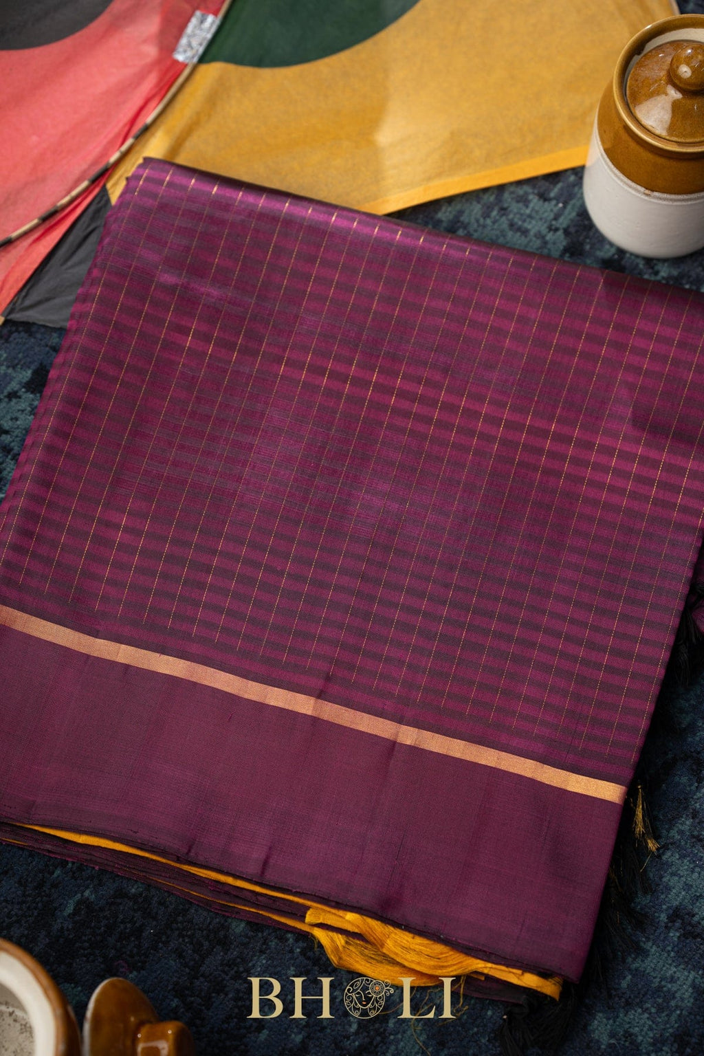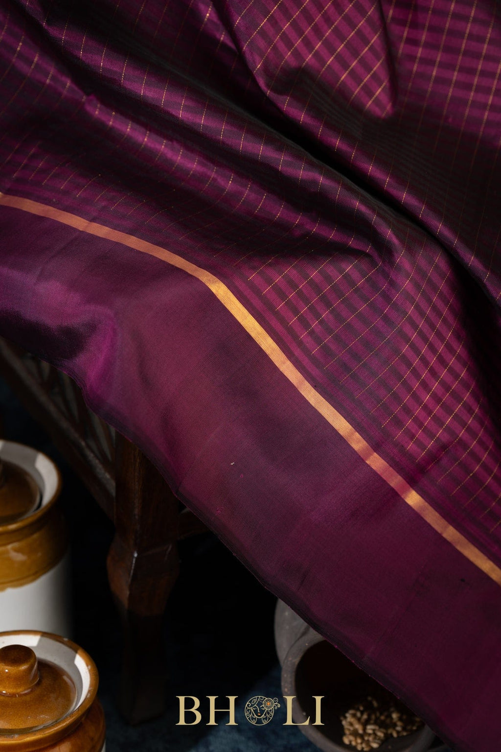 handwoven pure zari korvai kanjivaram with checkered pattern