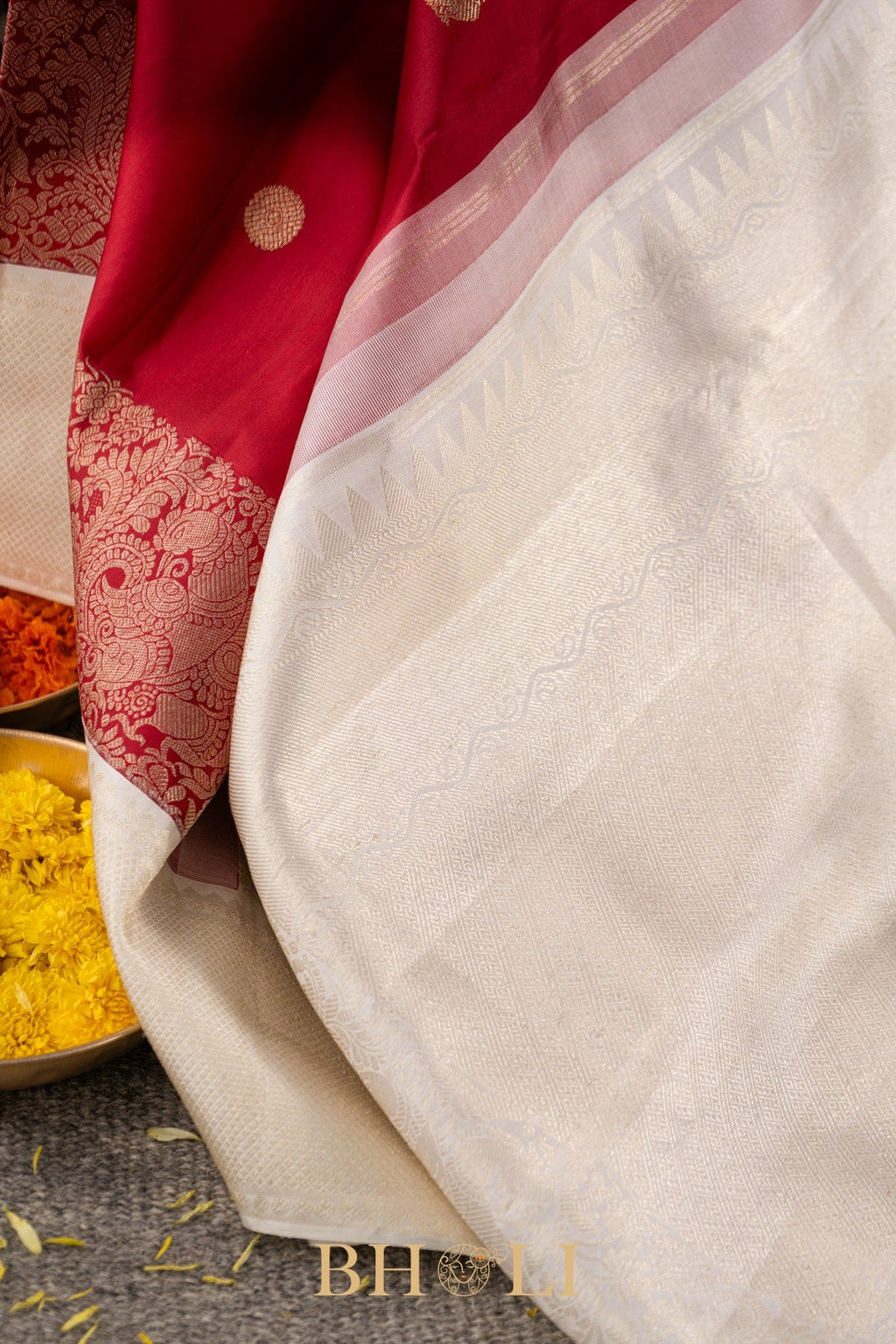 handwoven pure zari silk korvai red kanjivaram