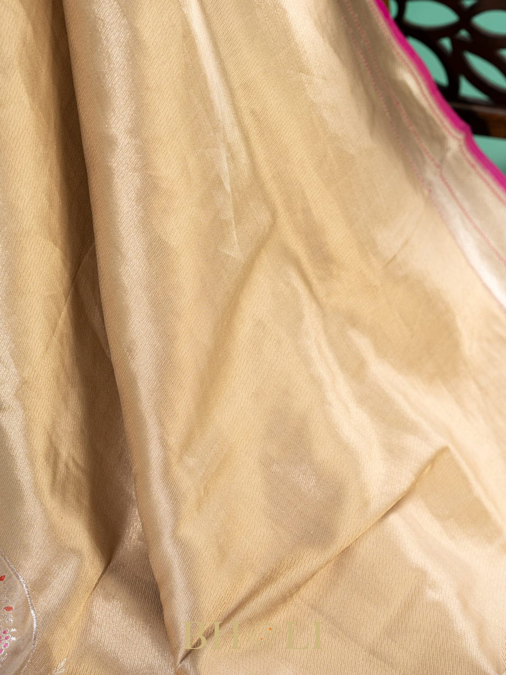 handwoven soft kora brocade gold body with kaduwa meenakari border banarasi