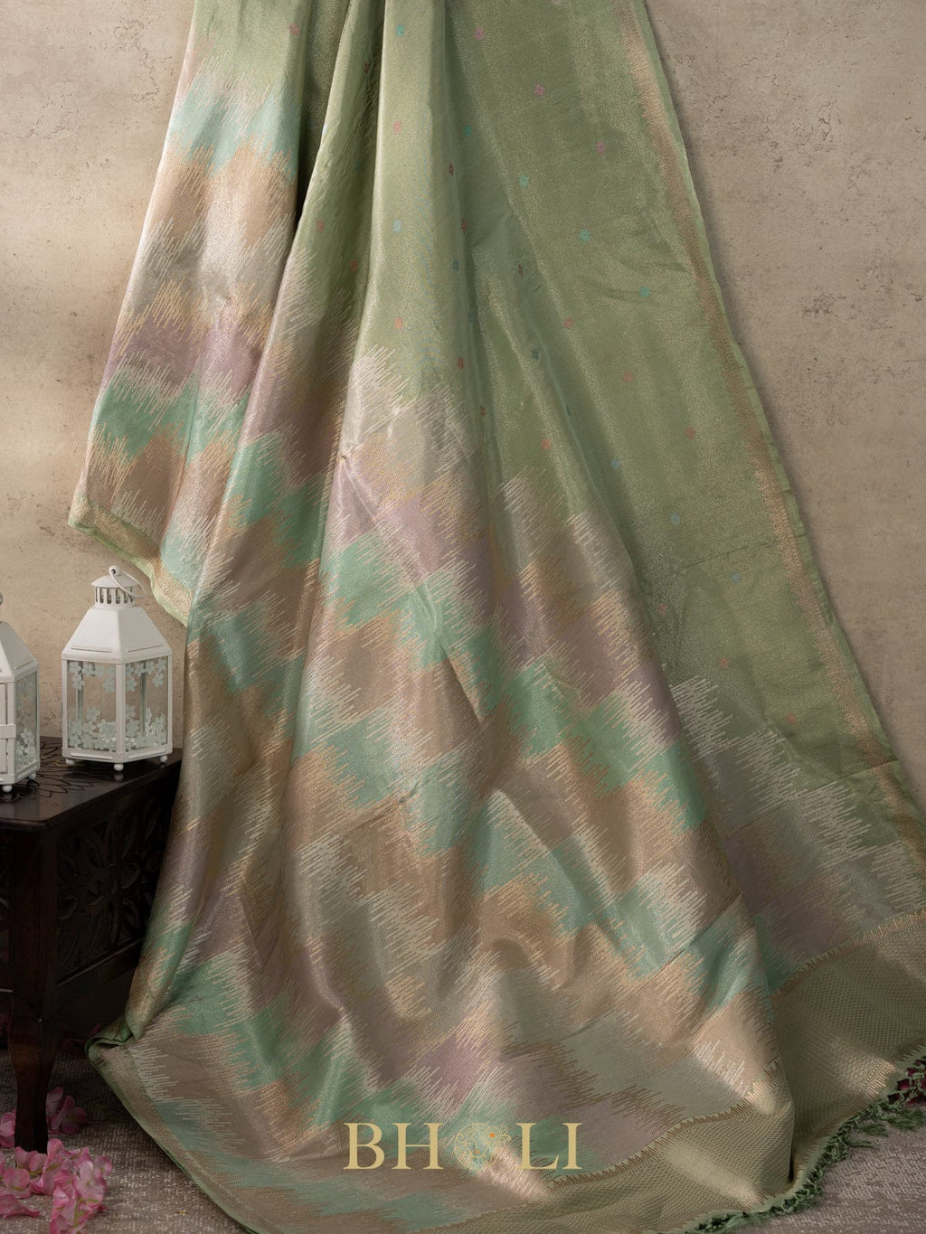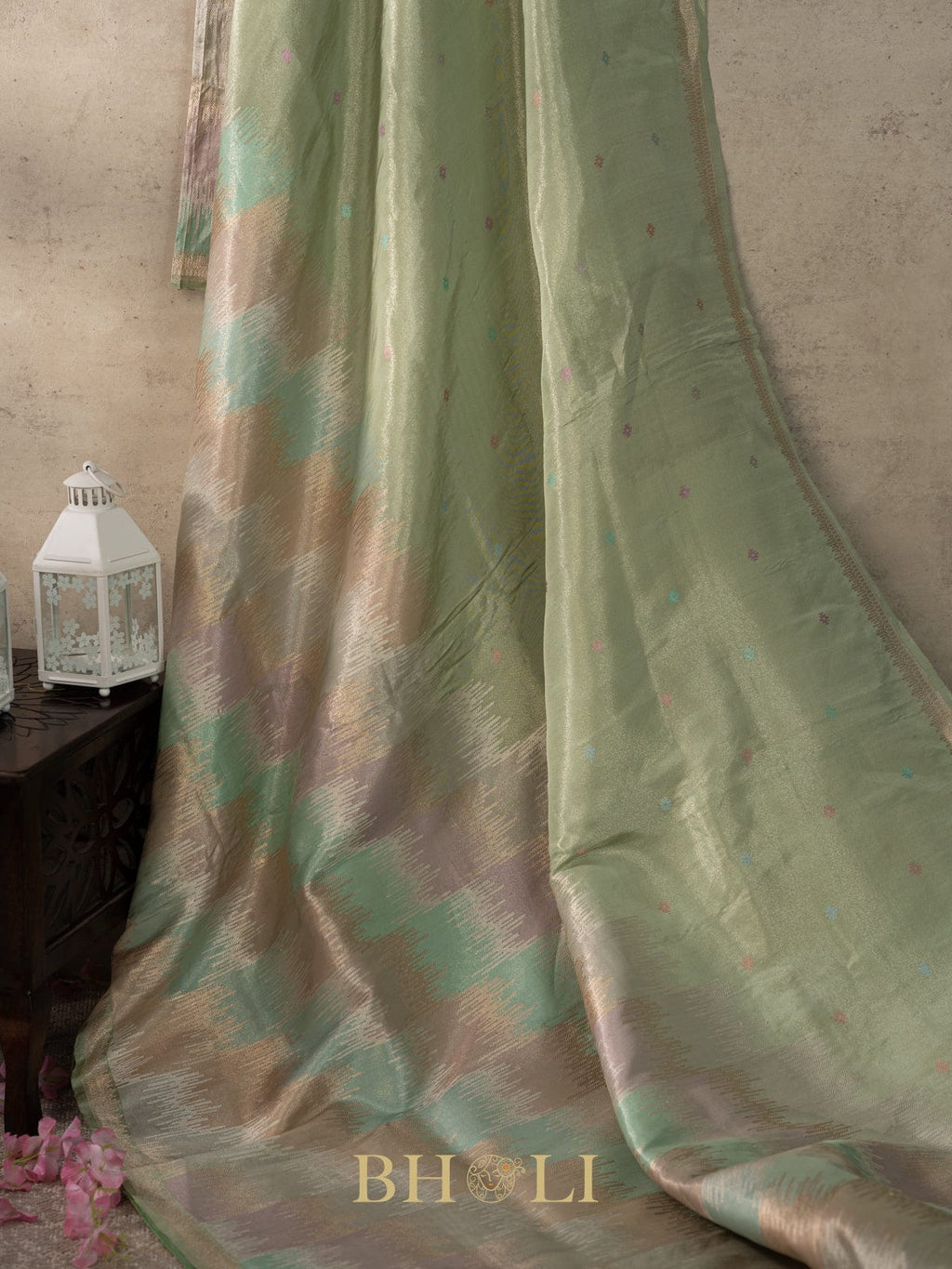Elevate your collection with this handwoven tissue silk authentic Rangkat Banarasi saree. Its exquisite craftsmanship and delicate silk weave offer unparalleled elegance and a rich cultural legacy. Ideal for weddings and special events, this saree promises a luxurious feel and a stunning, graceful look that draws admiration. Don’t miss the chance to own a truly timeless piece that enhances your style with sophistication and tradition.