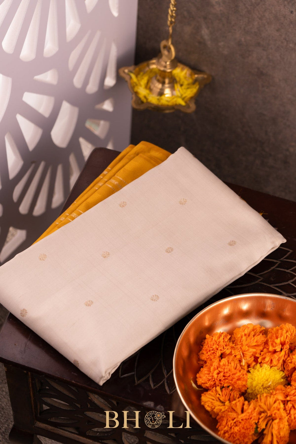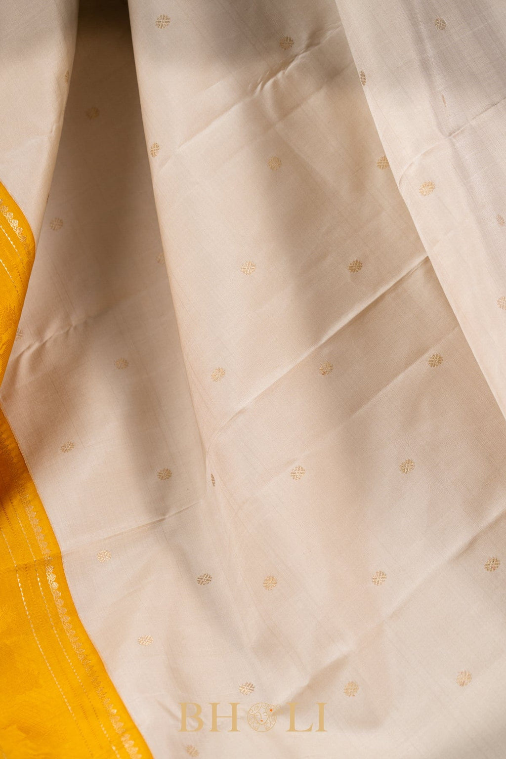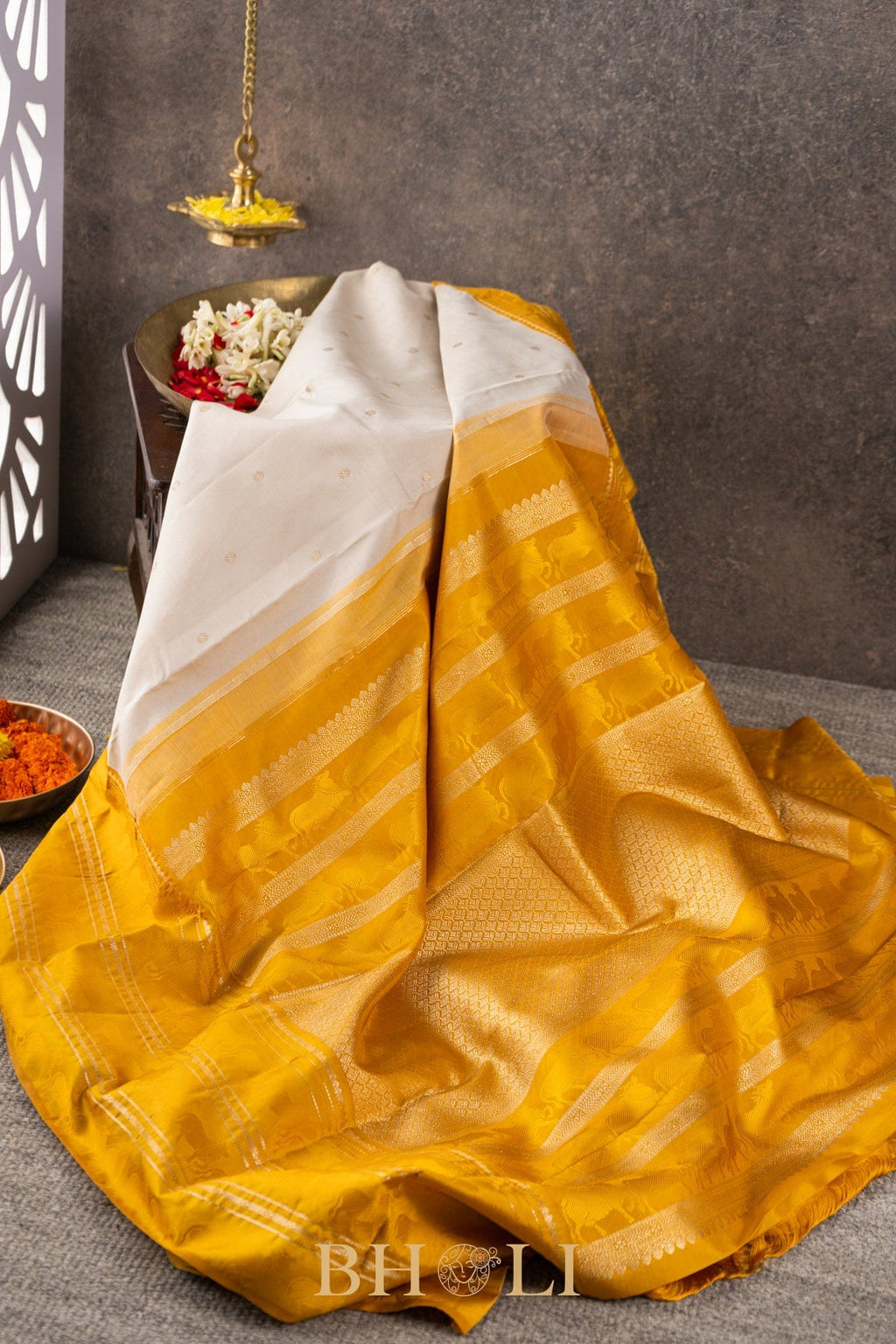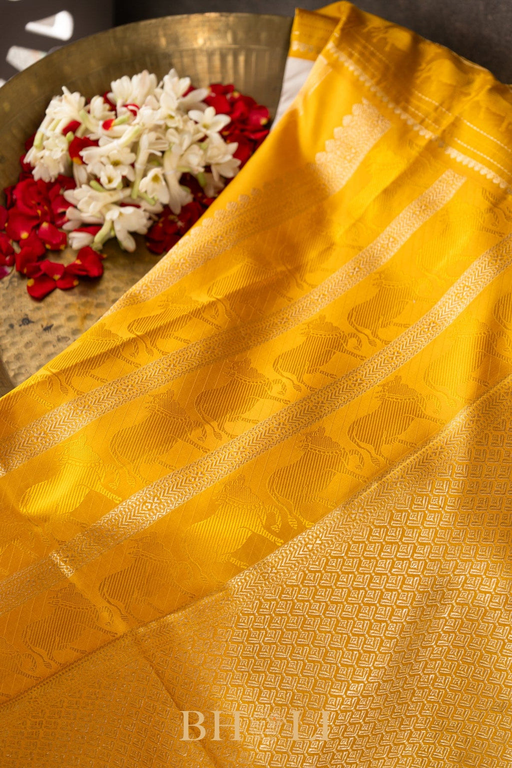 handwoven yellow pallu kai korvai mulberry silk kanjivaram