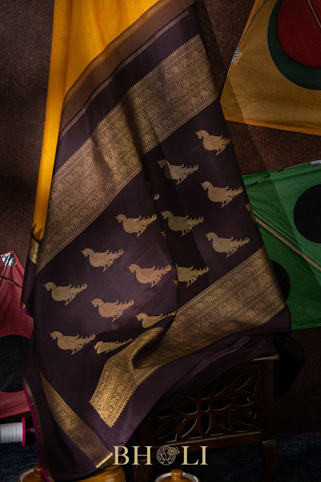 killi buttas pallu pure zari mulberry silk korvai kanjivaram