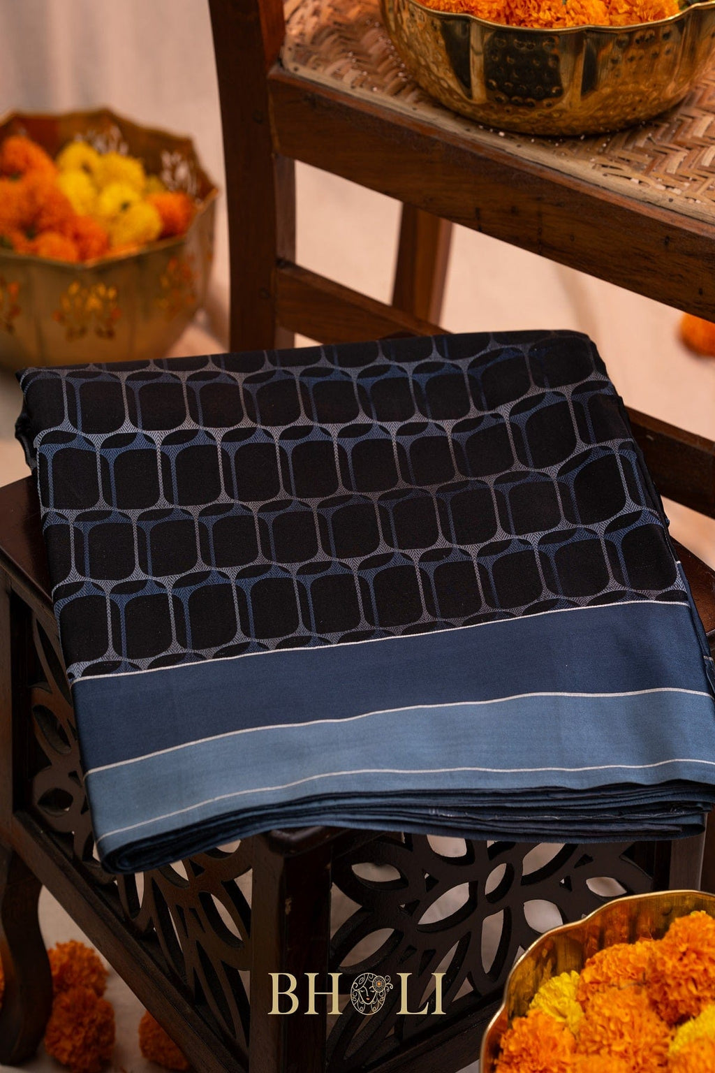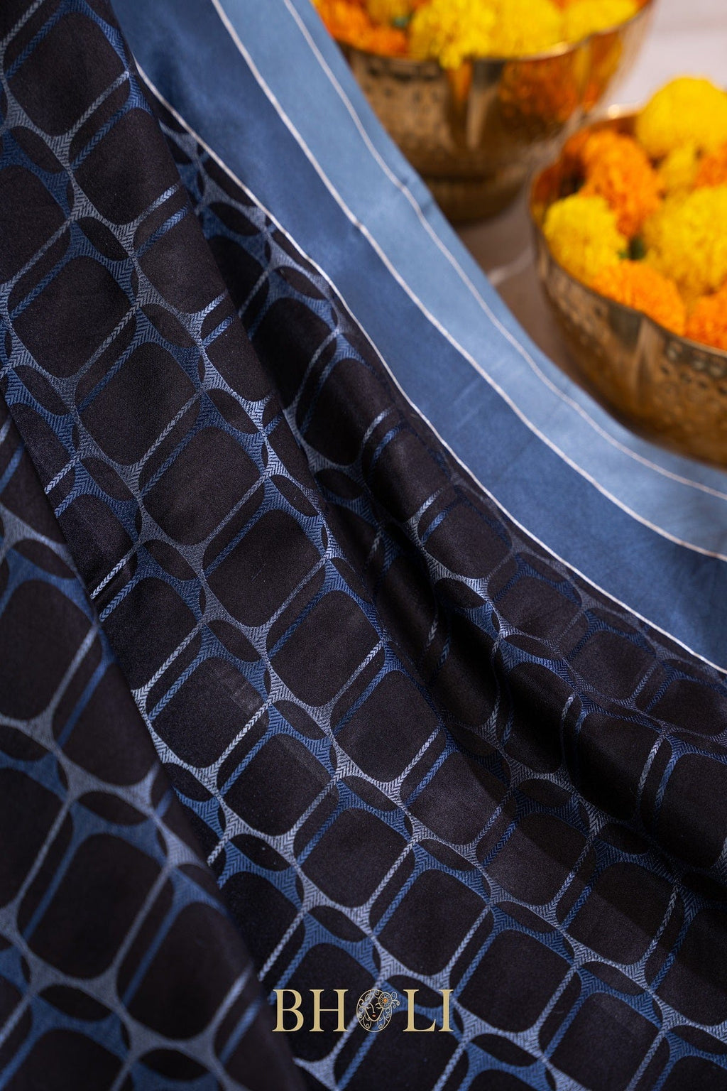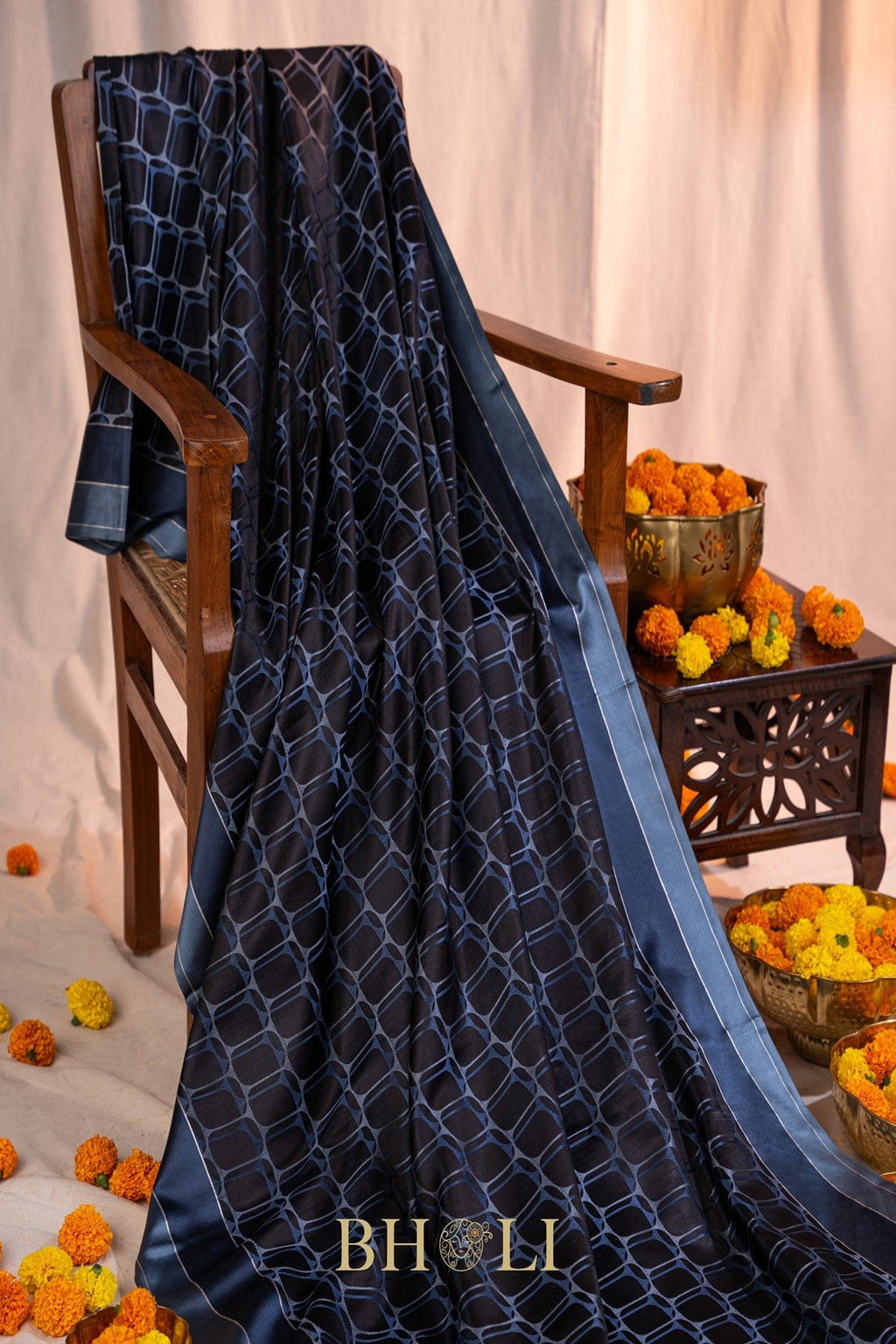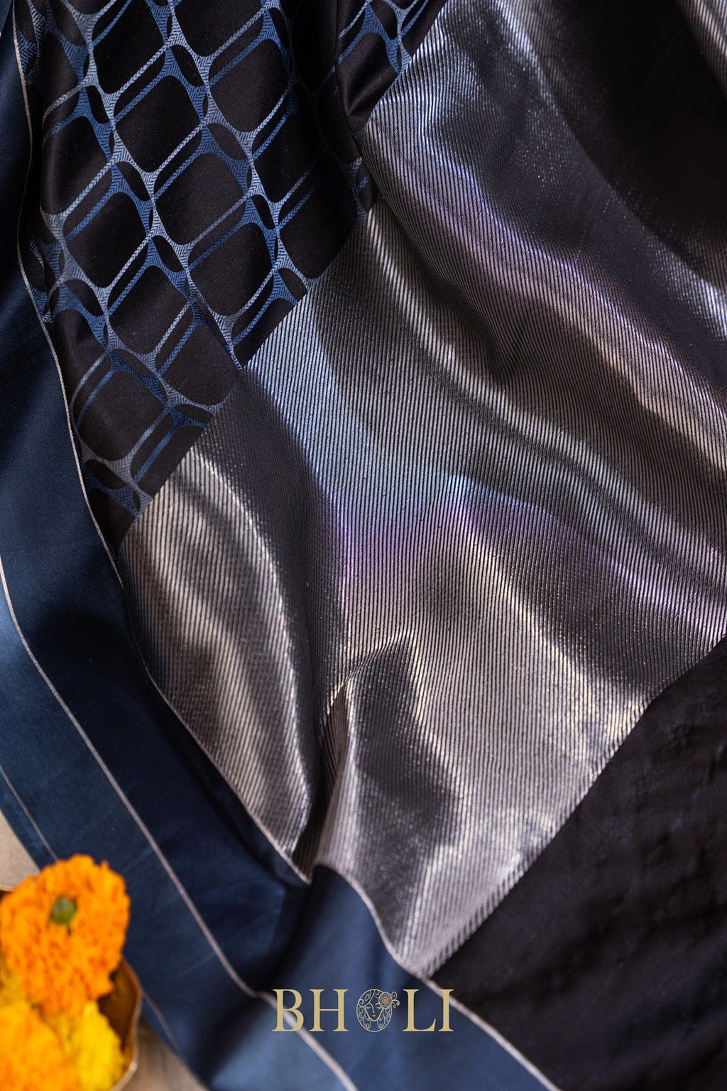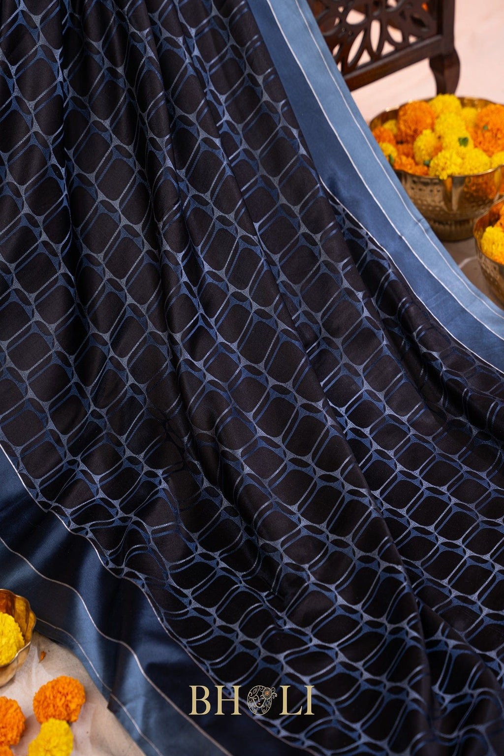 midnight blue honeycomb design mashru silk handwoven banarasi
