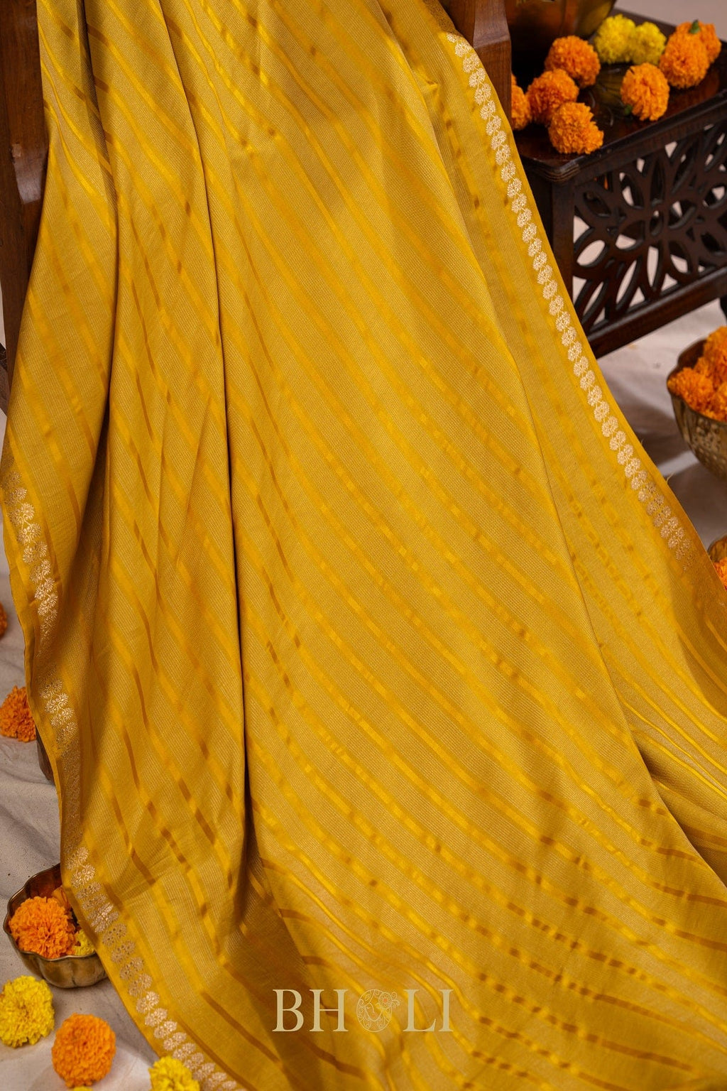 Brighten your wardrobe with this pure katan silk Banarasi saree, handwoven to perfection in sunny yellow. Its rich texture and intricate craftsmanship bring a playful charm to any occasion, letting you twirl in tradition with a touch of vibrant joy. Perfect for those who love classic elegance with a fun twist!