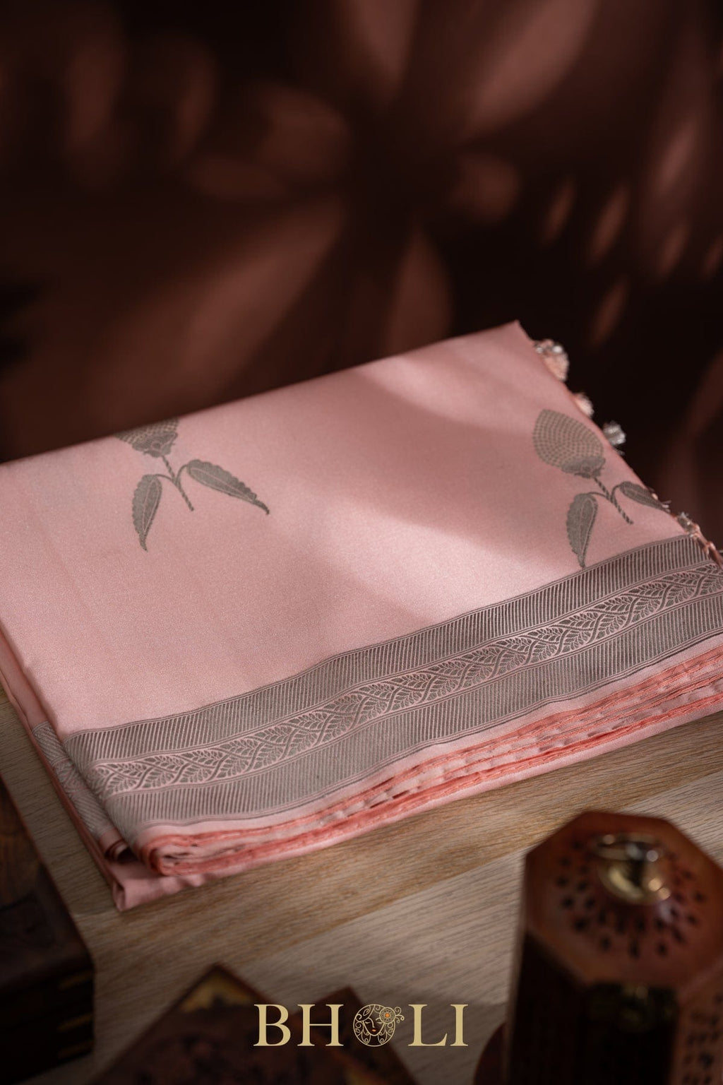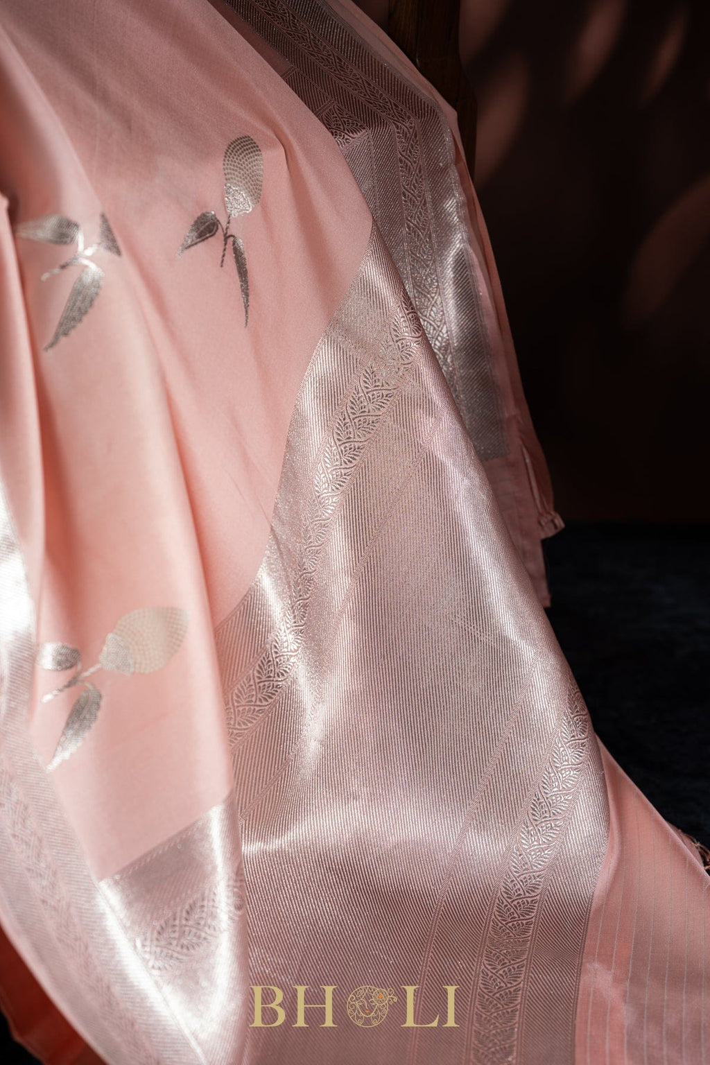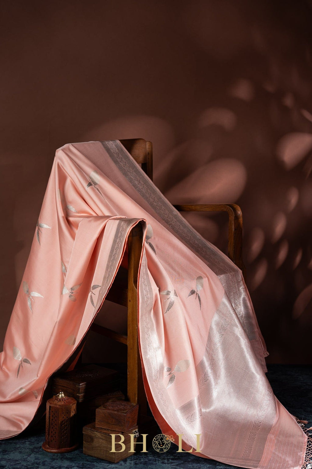 Elevate your wardrobe with this exquisite Pure Katan Silk Kaduwa Alfi Buta Banarasi saree in a stunning peach hue. Handcrafted with traditional weaving techniques, this saree features the iconic alfi buta motif—delicate floral patterns that showcase the artistry of Banarasi craftsmanship. The luxurious katan silk drapes beautifully, offering a soft yet structured elegance perfect for weddings, celebrations, and special occasions. The warm peach tone complements all skin tones, making it a versatile choice for your collection. Experience the timeless beauty and refined sophistication of authentic Banarasi weaving with every wear.
