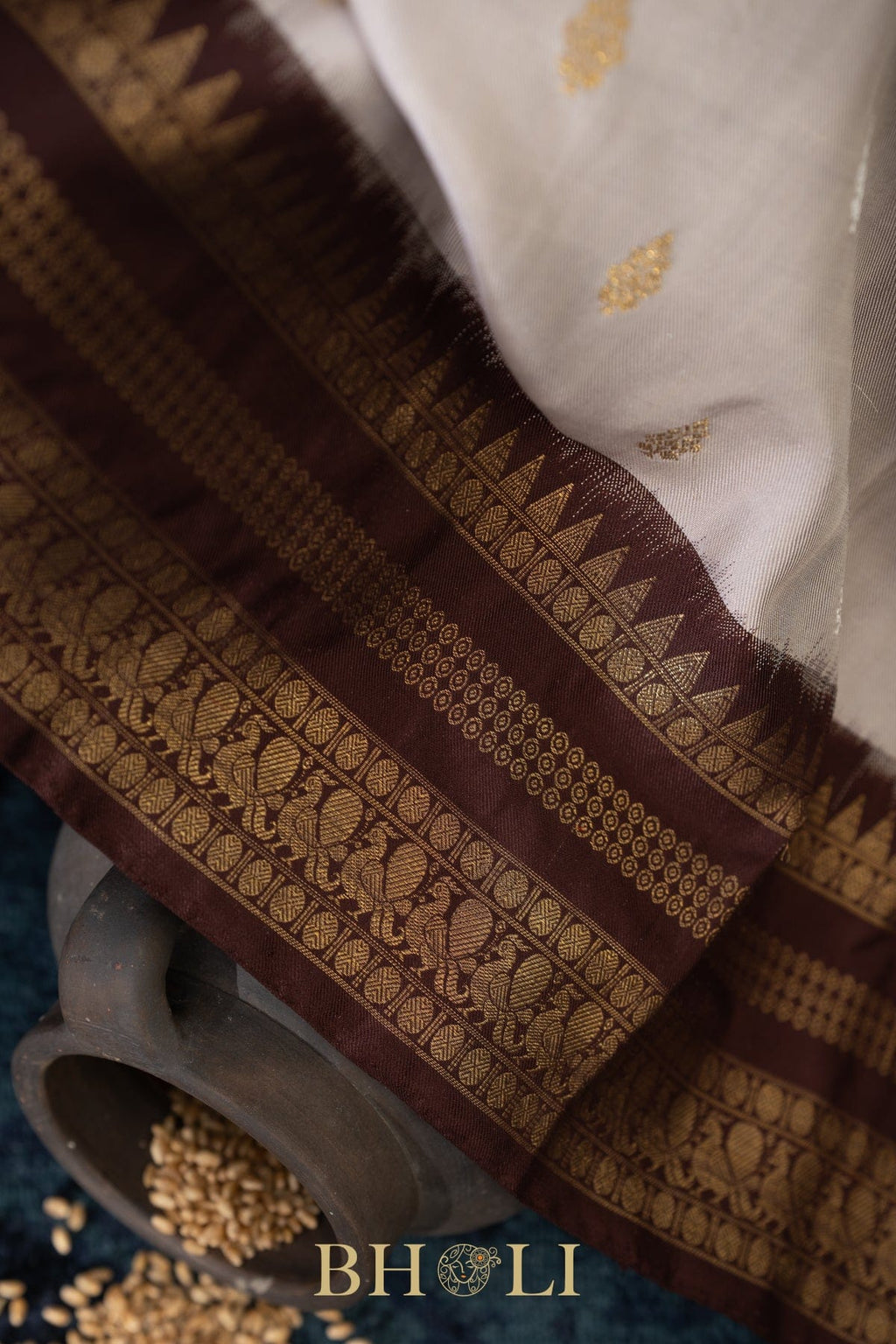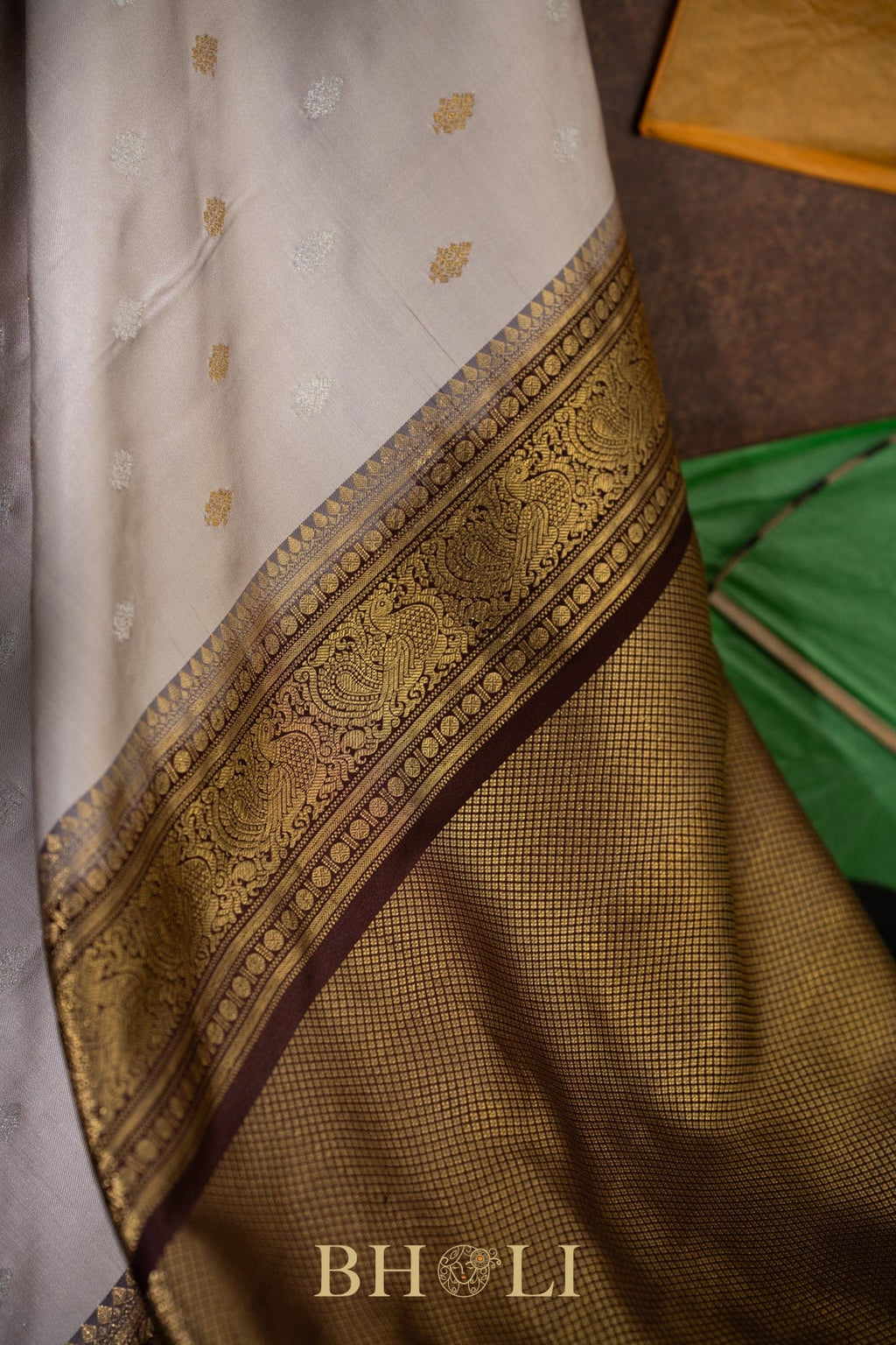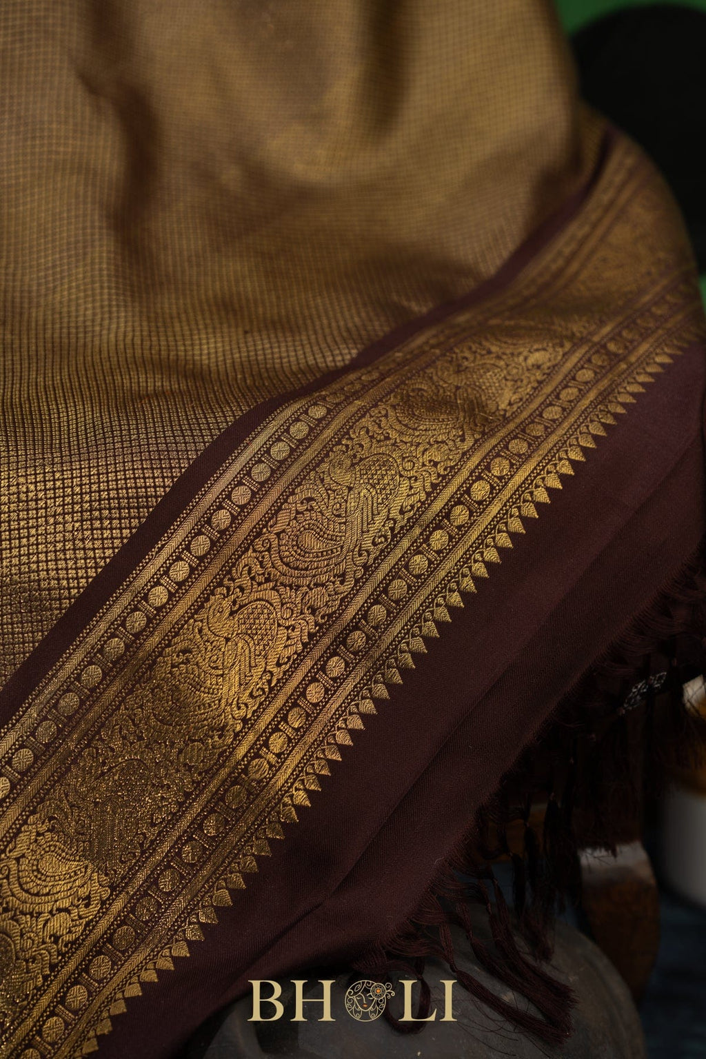 pure zari vintage design twill handwoven korvai kanjivaram silk
