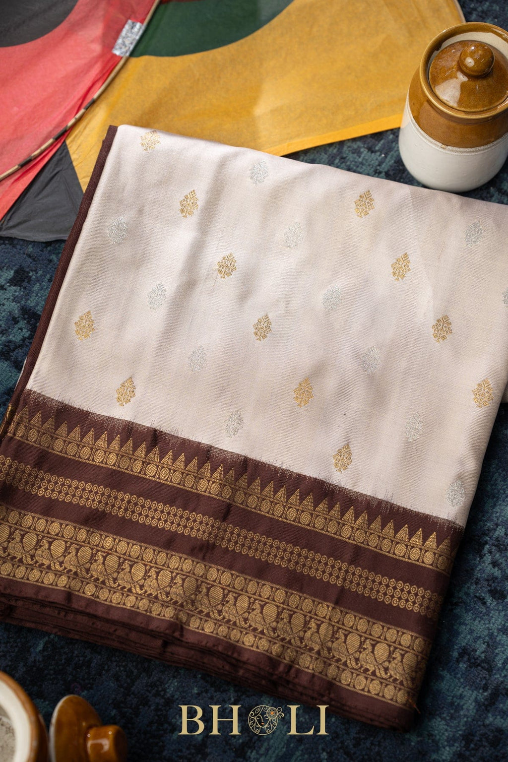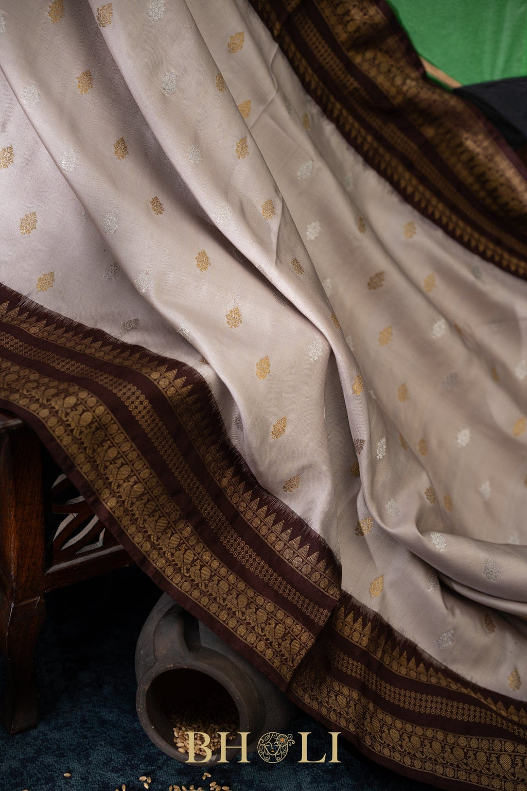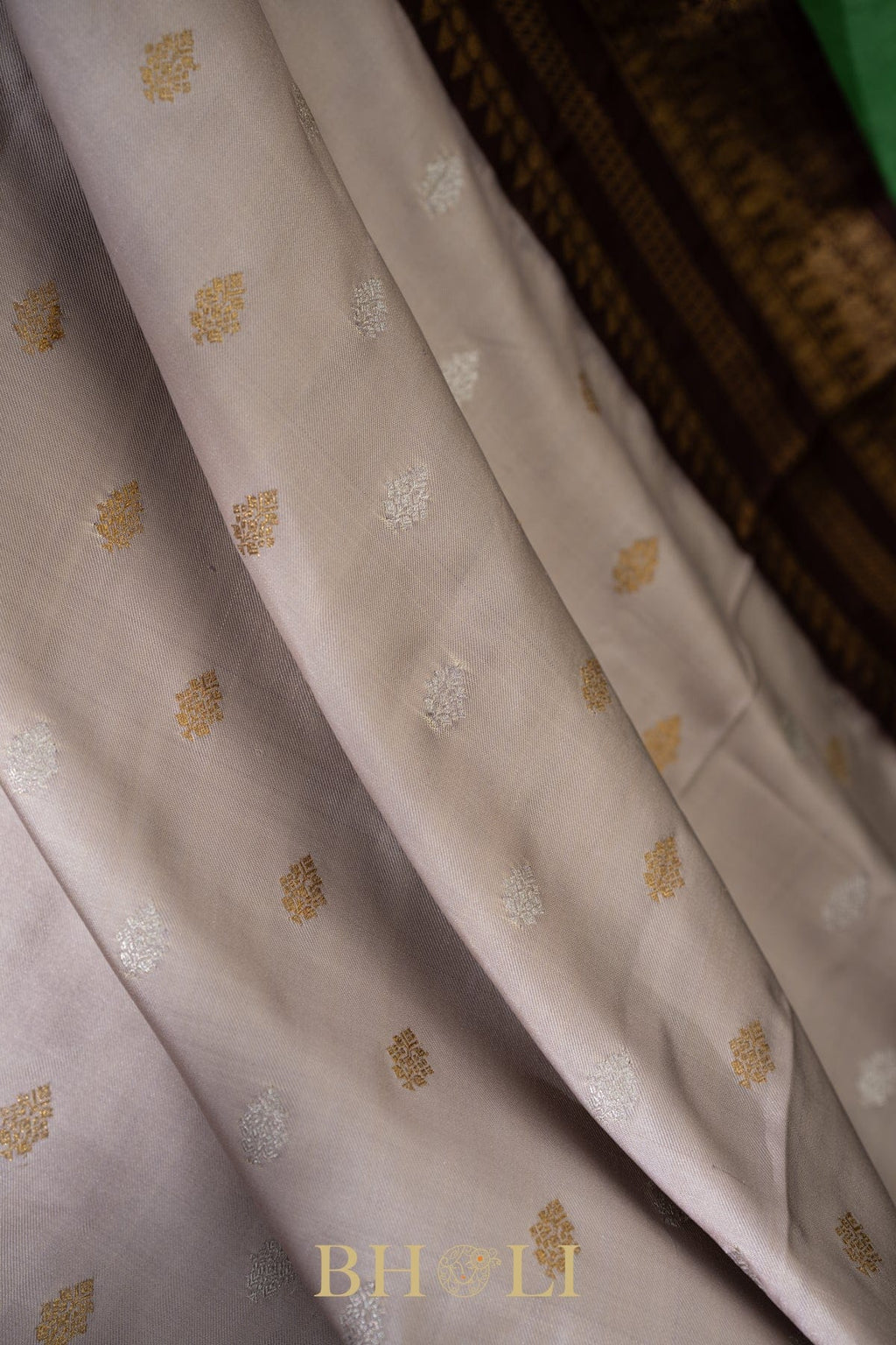 pure zari vintage design twill handwoven korvai kanjivaram silk