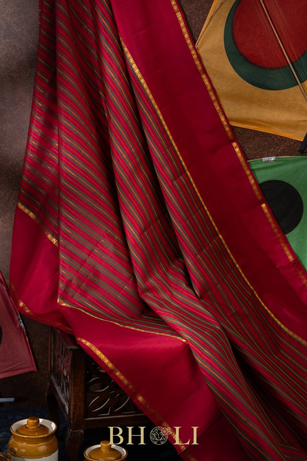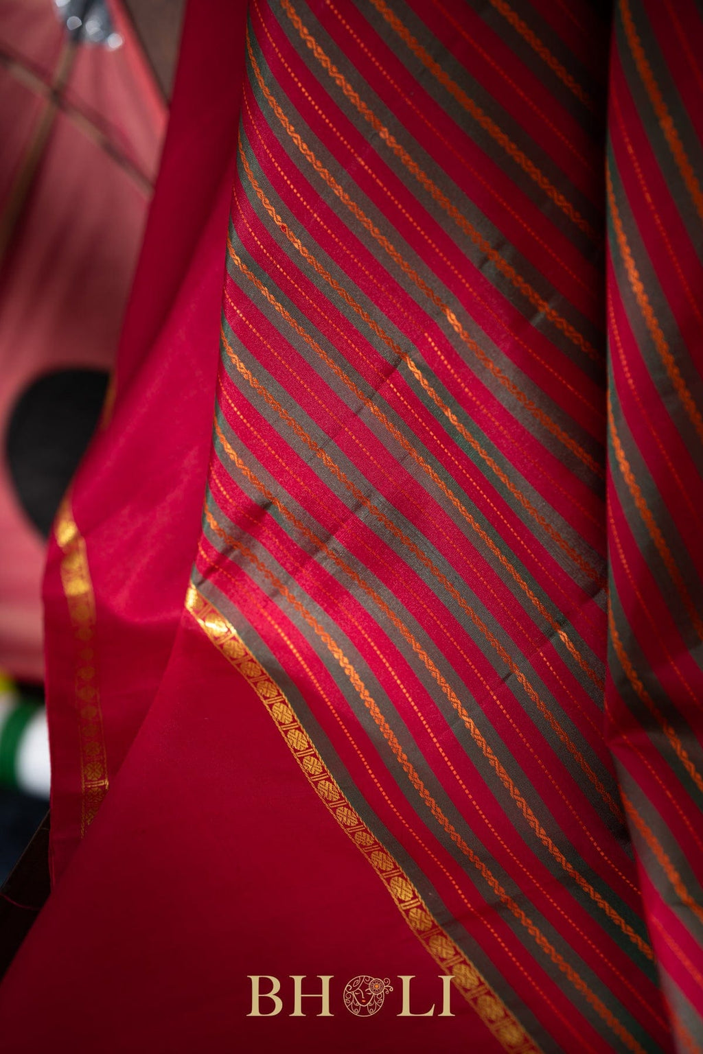 Drape yourself in pure silk magic! This stunning Kanjivaram saree features exquisite retta pettu work adorned with authentic zari, all crafted from luxurious mulberry silk. The intricate traditional weaving creates a mesmerizing play of light and texture that catches every eye. Perfect for celebrations, weddings, or whenever you want to feel absolutely radiant. Experience the timeless elegance of South Indian craftsmanship with every graceful drape.