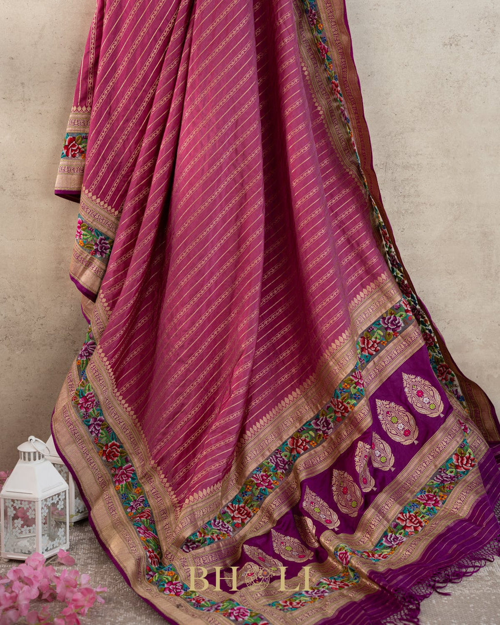 royal pure katan silk kaduwa with petite point hand embroidered banarasi