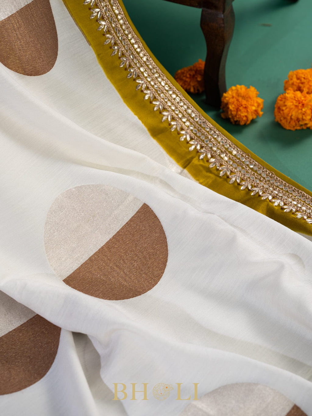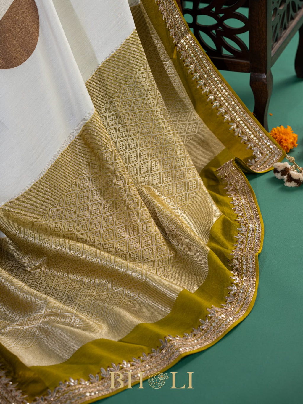 Drape yourself in timeless elegance with this stunning tussar georgette Banarasi saree! Crafted from luxuriously soft tussar silk blended with airy georgette, this beauty offers the perfect balance of comfort and sophistication. Every inch showcases intricate hand embroidery inspired by the legendary Banarasi weaving tradition, featuring delicate patterns that catch the light beautifully. The lightweight fabric makes it ideal for both festive celebrations and graceful everyday wear. Perfect for anyone who loves traditional craftsmanship with a modern twist—because who says you can't feel like royalty while staying cool and comfortable?