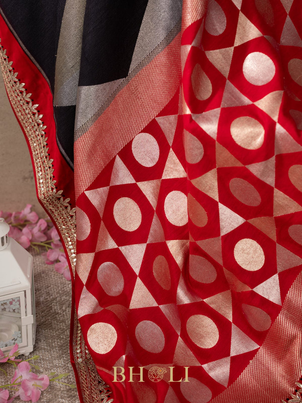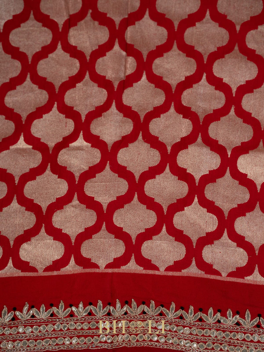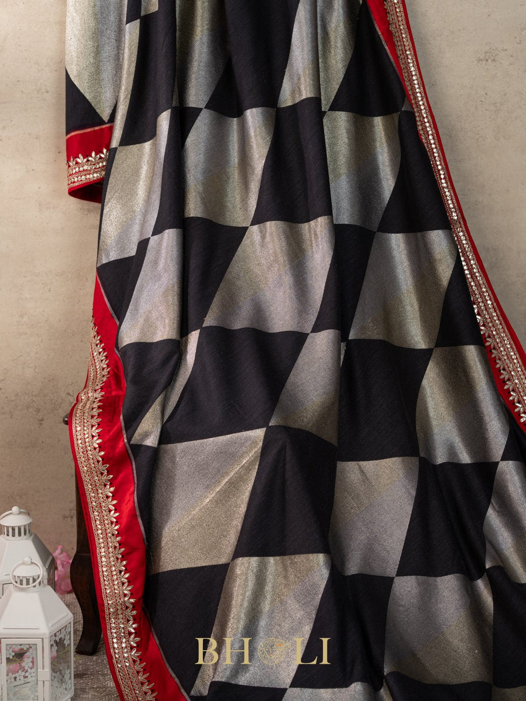 tussar georgette in silver and gold zari with embroidered gotta patti border