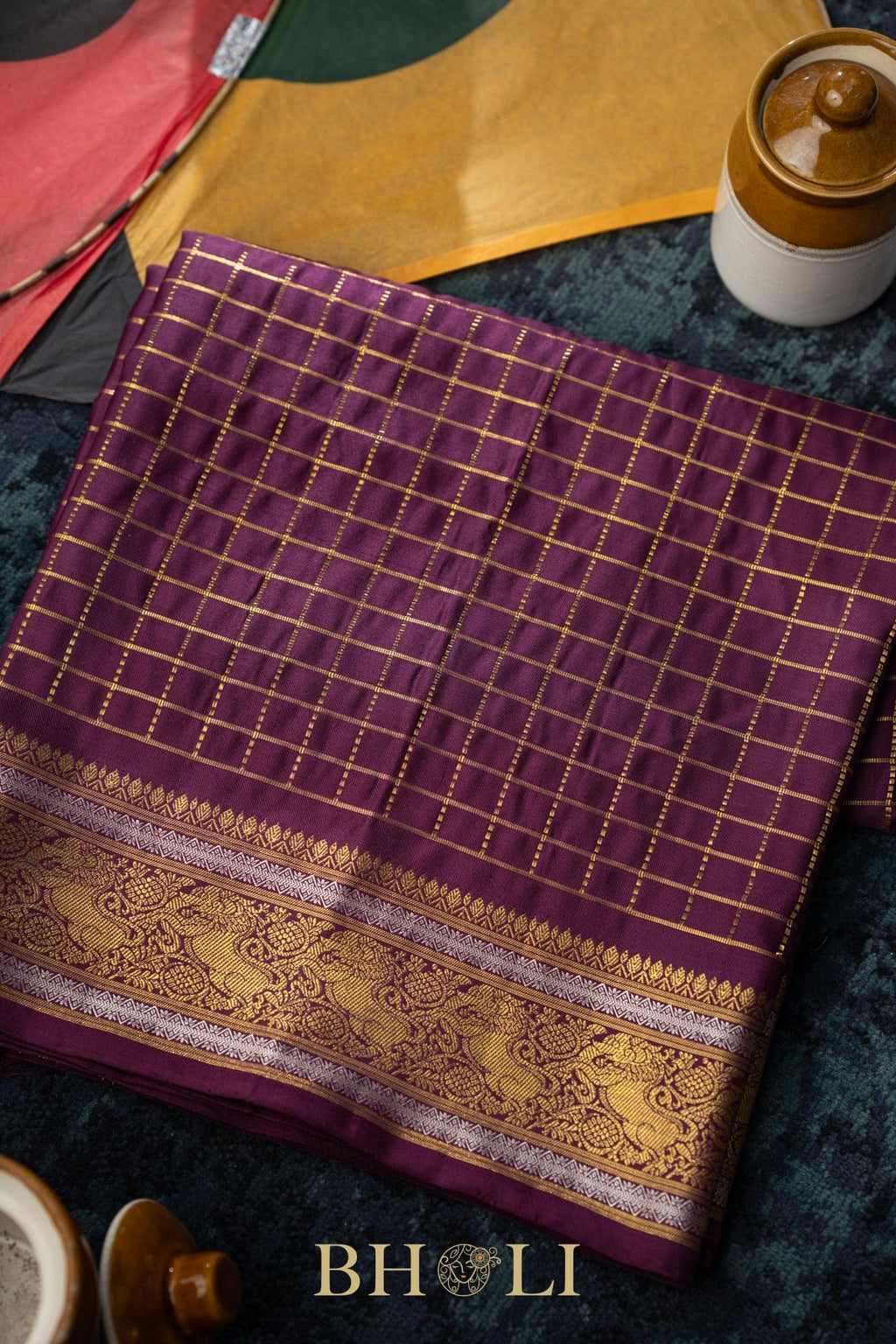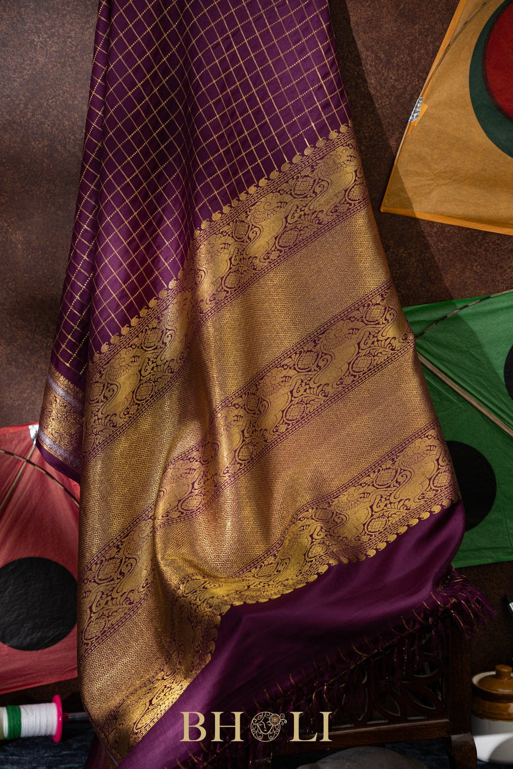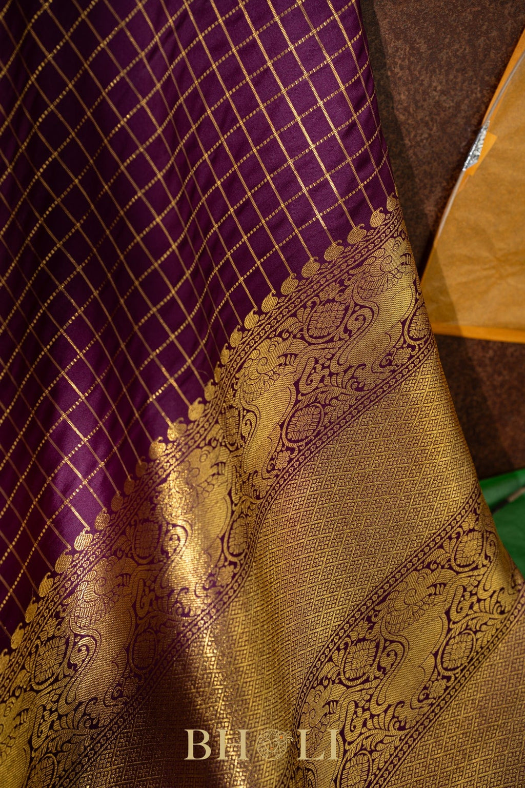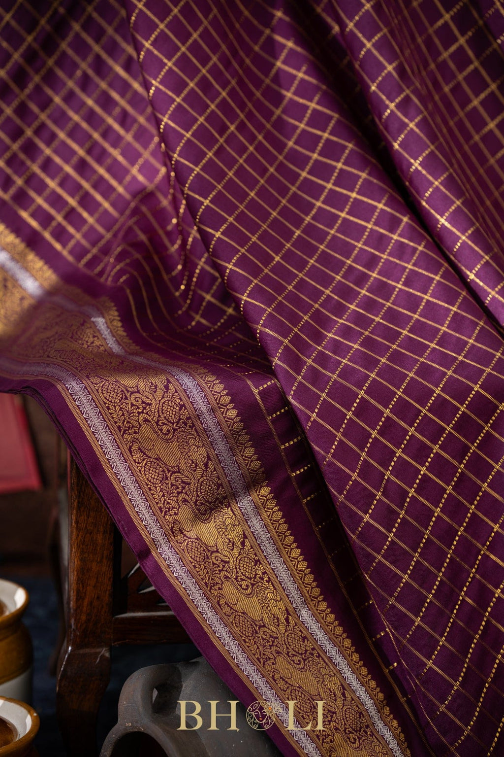 vintage design pure zari checkered mulberry silk kanjivaram